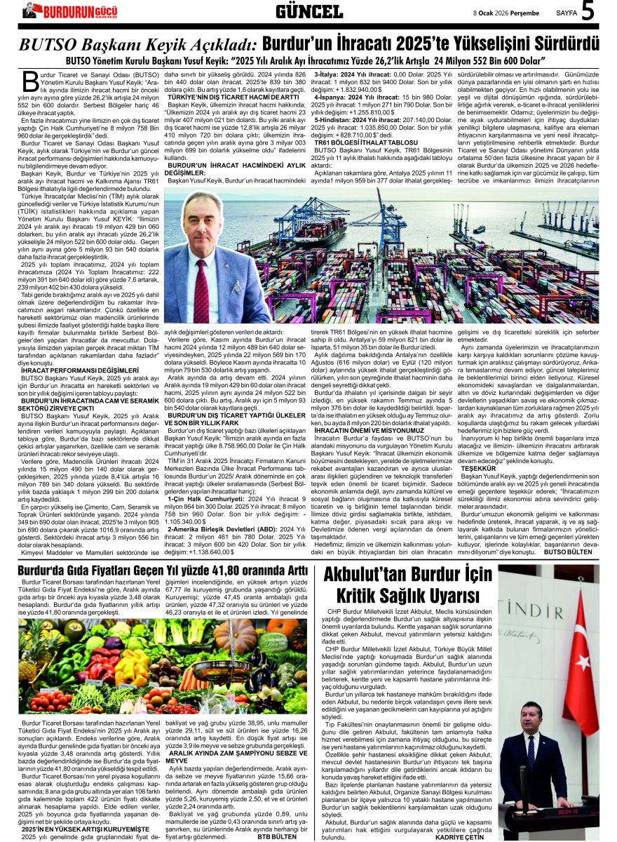 BURDURUN GÜCÜ 5 OCAK 2026 TARİHLİ SAYISI