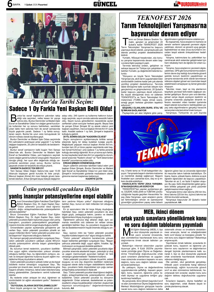 BURDURUN GÜCÜ 6 ŞUBAT 2026 TARİHLİ SAYISI