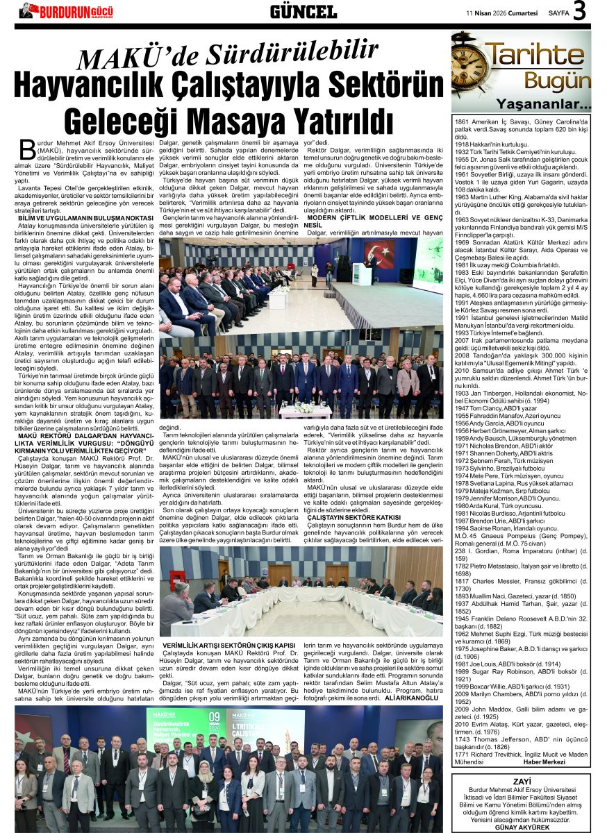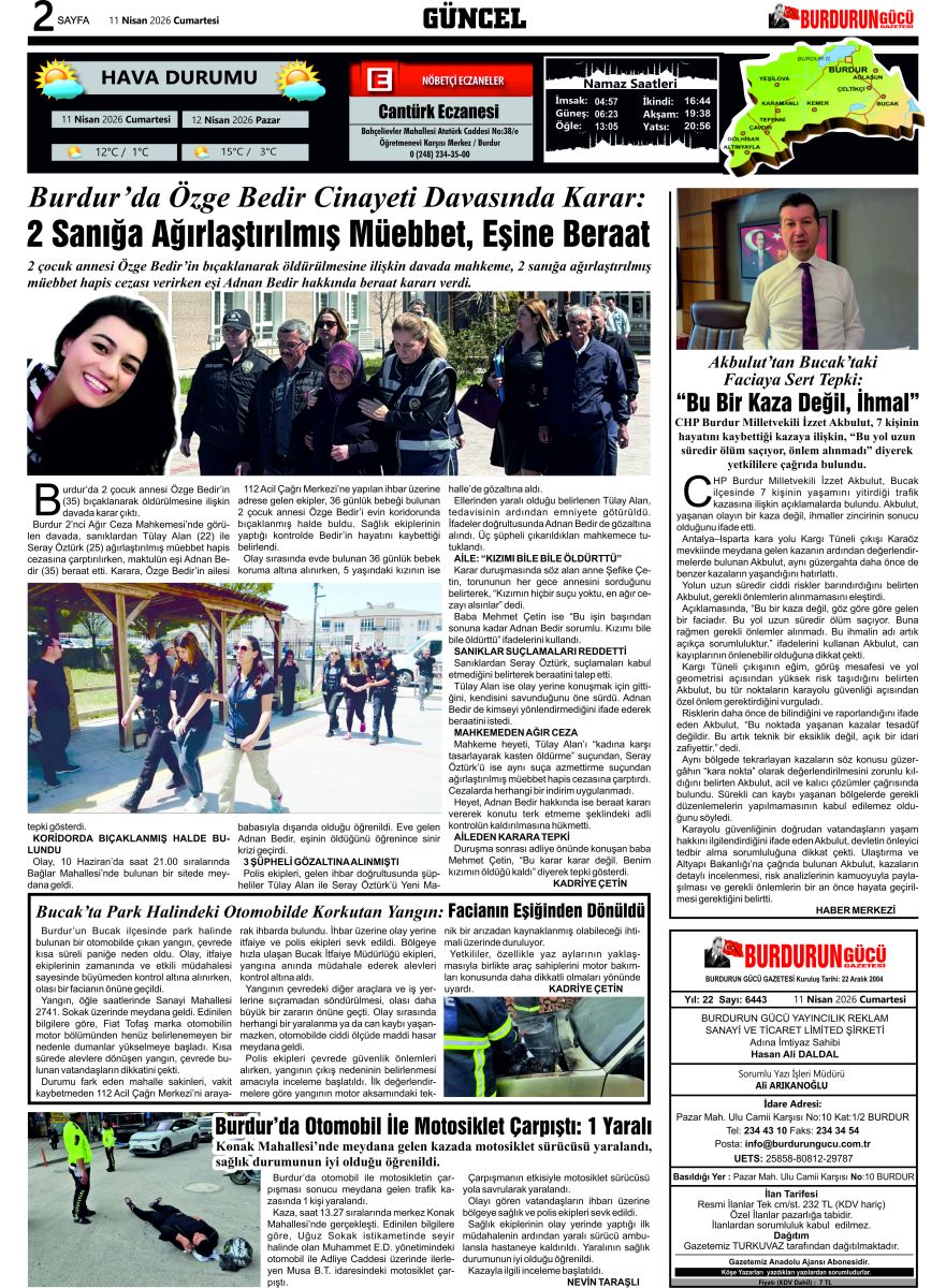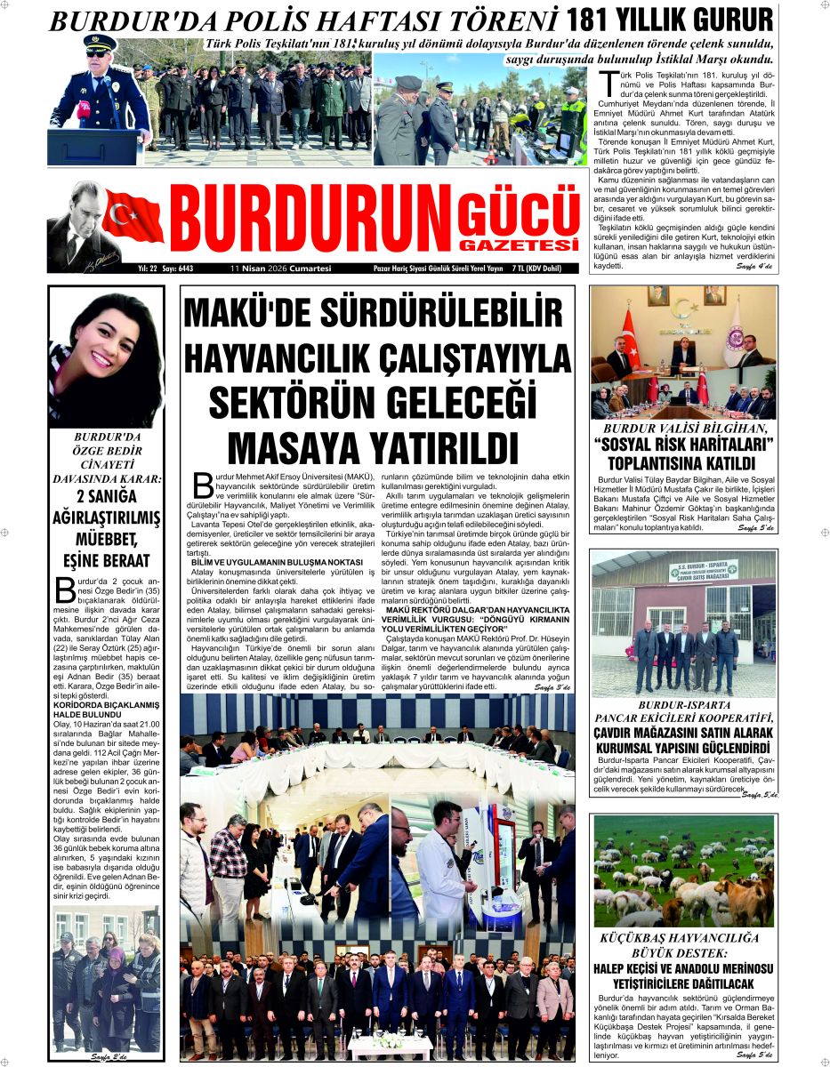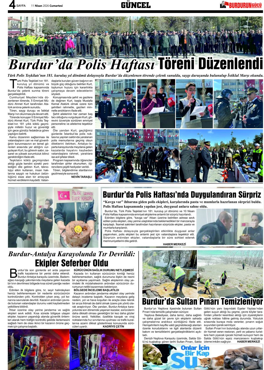 BURDUR'UN GÜCÜ GAZETESİ - GAZETEMİZ 11 NİSAN 2026 TARİHLİ SAYISI