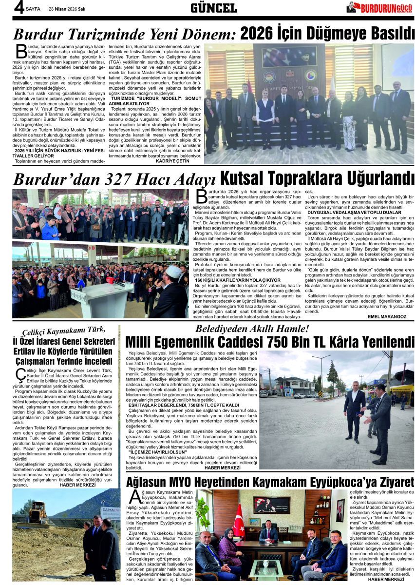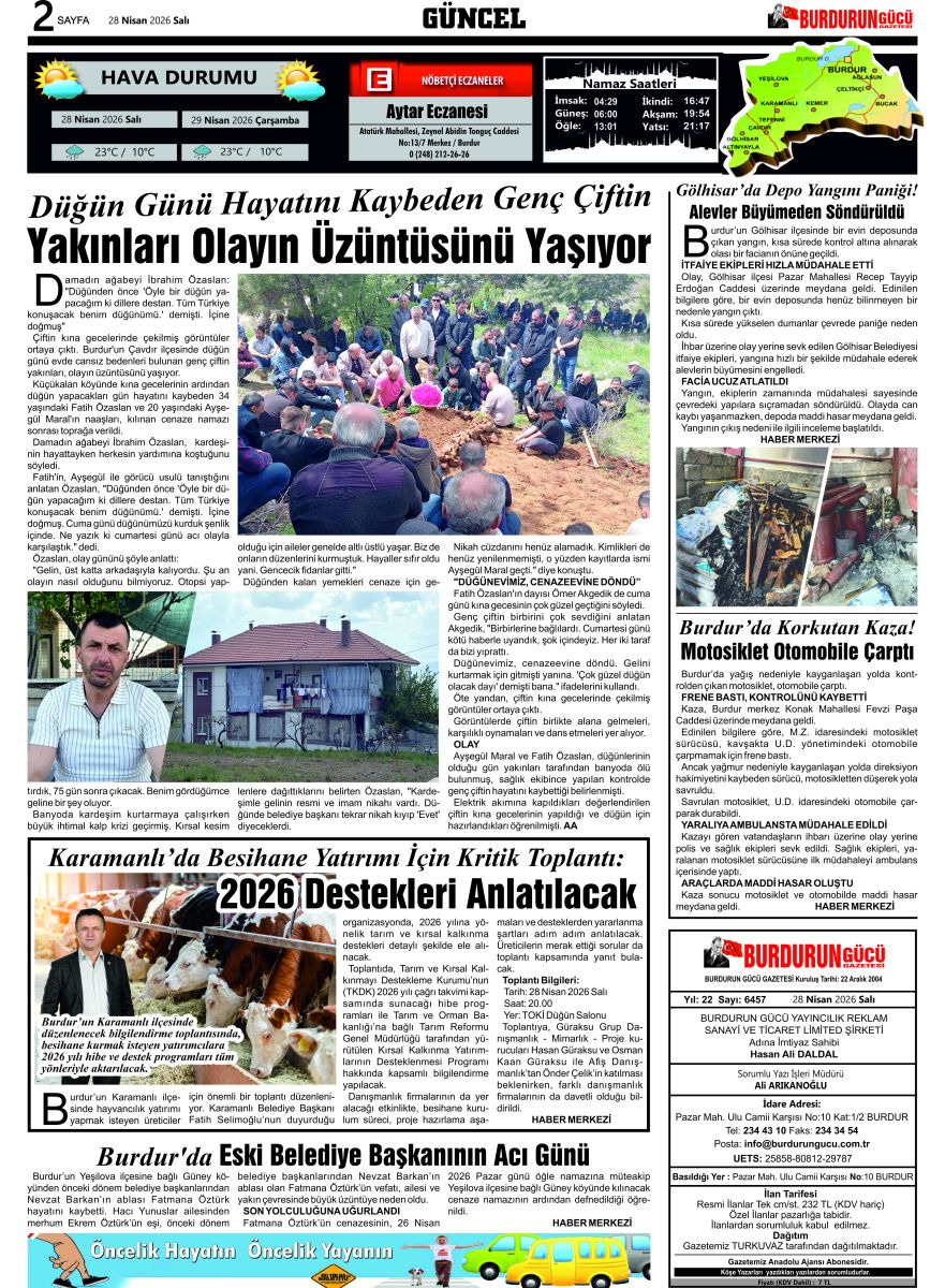 BURDUR'UN GÜCÜ GAZETESİ - GAZETEMİZ 28 NİSAN 2026 TARİHLİ SAYISI