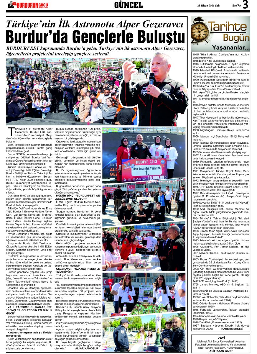 BURDUR'UN GÜCÜ GAZETESİ - GAZETEMİZ 27 NİSAN 2026 TARİHLİ SAYISI