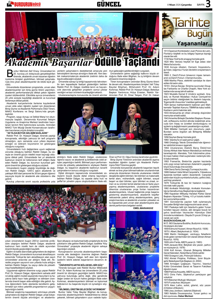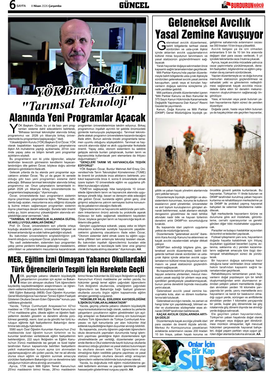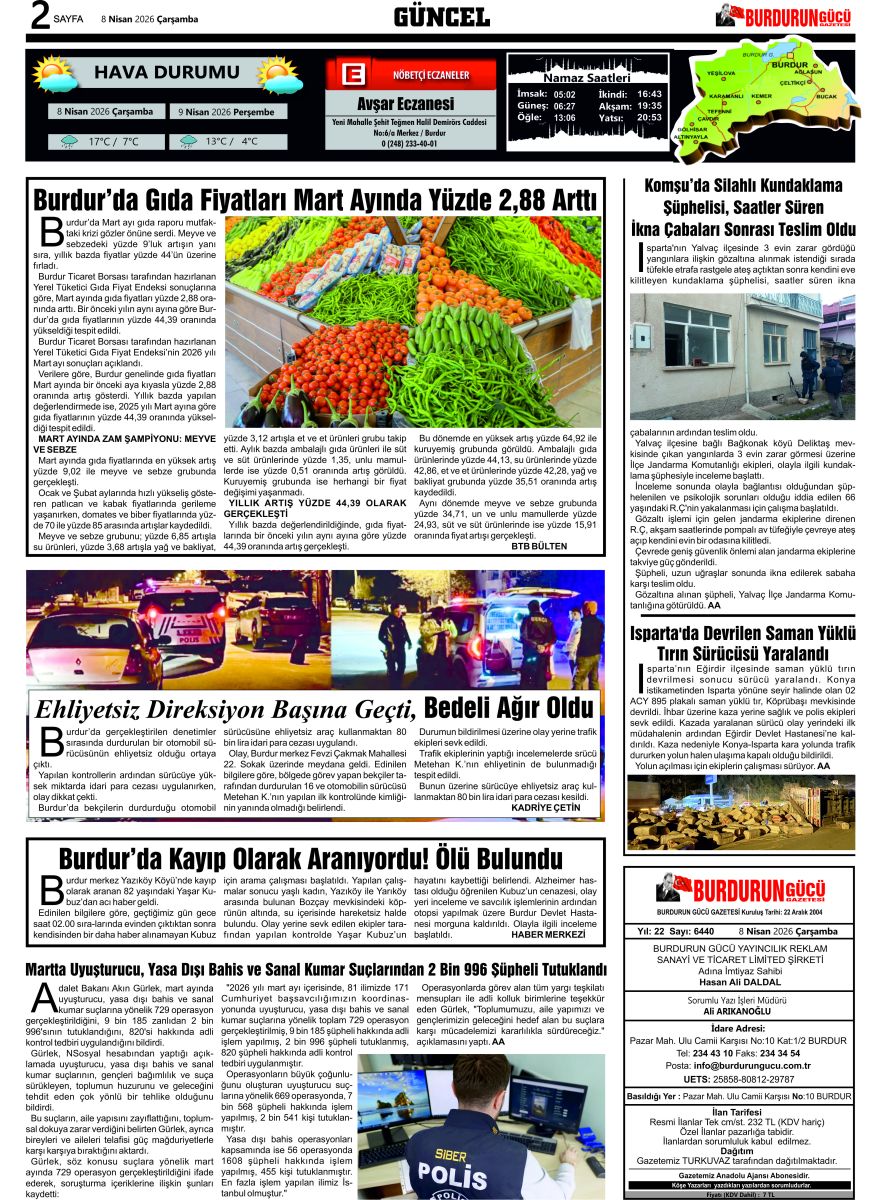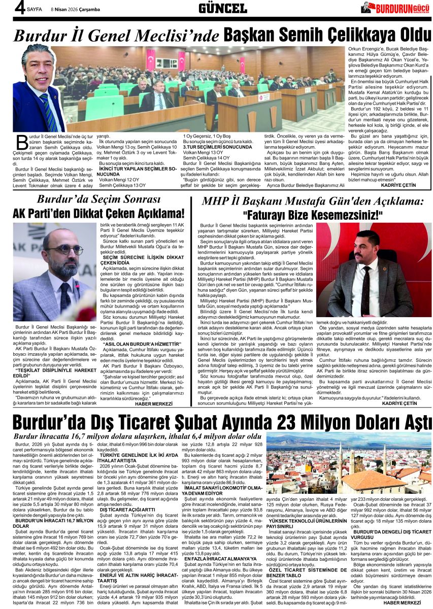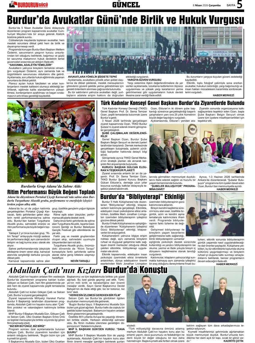 BURDUR'UN GÜCÜ GAZETESİ - GAZETEMİZ 8 NİSAN 2026 TARİHLİ SAYISI