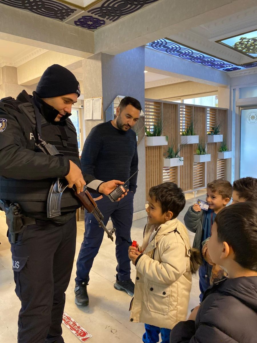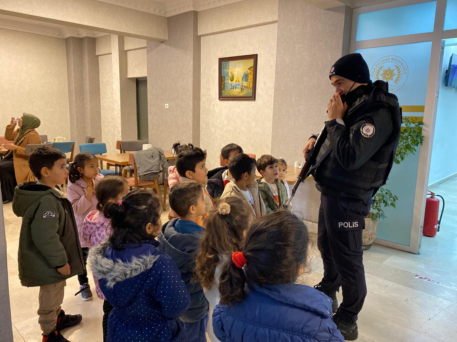 Ziyaret sırasında Burdur Polis Evini de gezen minik dedektifler, telsizden anons geçerek polislerin görevlerini deneyimleme fırsatı buldu.