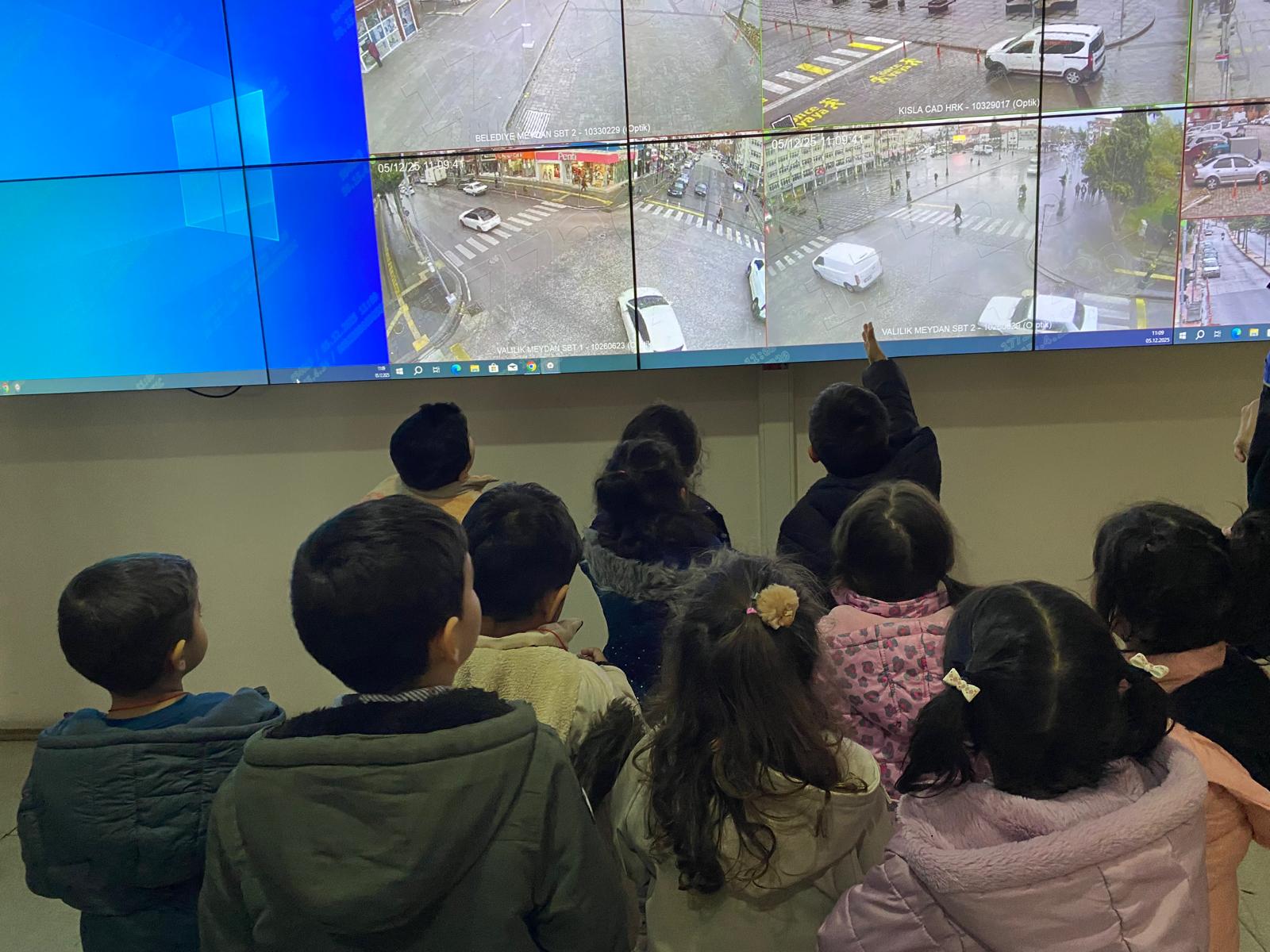 Ardından öğrenciler, KYGS (Kent Güvenlik Yönetim Sistemi)odasından Burdur’un güvenliğini takip ederek kaza ve yanan araç videolarını izledi.