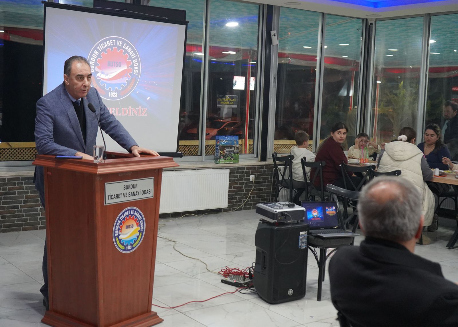 İlçemiz Burdur’umuzun üçüncü büyük ilçesi. 37 köyle de en fazla köyü olan ilçemiz. Turizm, tarım ve hayvancılık dışında çok fazla bir ticari faaliyetimiz yok. Bizler bu güzel coğrafyada biraz zorlanıyoruz. Bunun ekonomik sıkıntılarla da alakası var. Diğeri geldiğimiz noktada Başkan seçildikten sonra Özel Çevre Koruma Kanunu kapsamında olan bir ilçe ile karşılaştık. Bu ilginç bir durum yarattı, Burdur’da imar yetkisi olmayan tek ilçe Yeşilova. Salda Gölünün kıyısından itibaren 13 kilometre çapında bir korumaya tabi. Şehirler imarla kalkınır bizde inşaat yapma izni bize bağlı değil. O yüzden çok zorlanıyoruz, Halkımızın beklentisi var bu özel coğrafyada ama belediye olarak çok zorlanıyoruz. Biz var gücümüzle çalışıyoruz o konuda sizlerin de desteğiyle elimizden gelenin fazlasını yapmaya çalışıyoruz. Bunları aşmamız için el birliğine ihtiyacımız var. Esnaf Odamızla birlikte ilçemize ekonomik destek olmaya çalışıyoruz ama genel konjonktür bakımından sıkıntılarımız var. Milletvekillerimizden ve Odamızdan bu konuda destek bekliyoruz. Önümüz açık aslında ama hep beraber, birlik ve beraberlik içerisinde olmadıkça gerçekleşmiyor. Ben beraberlikle bu işi çözeceğimize yürekten inanıyorum. Bizleri bu salonda topladığı için çok kıymetli başkanımıza ve yönetim kuruluna teşekkür ediyorum” şeklinde konuştu.