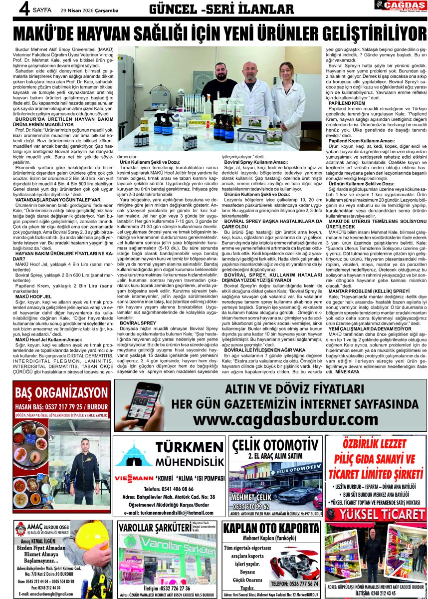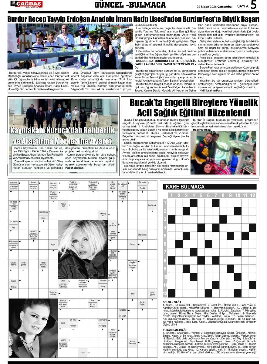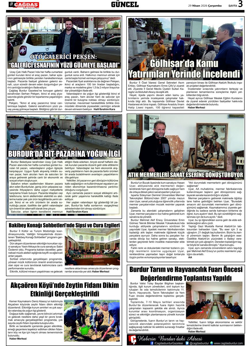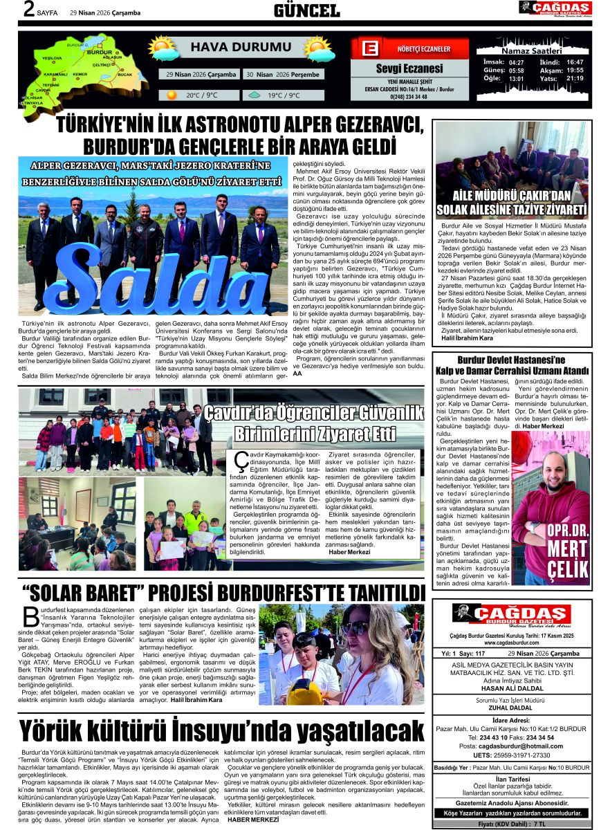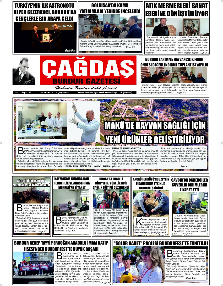 ÇAĞDAŞ BURDUR GAZETESİ'NİN GAZETEMİZ 29 NİSAN 2026 TARİHLİ SAYISI