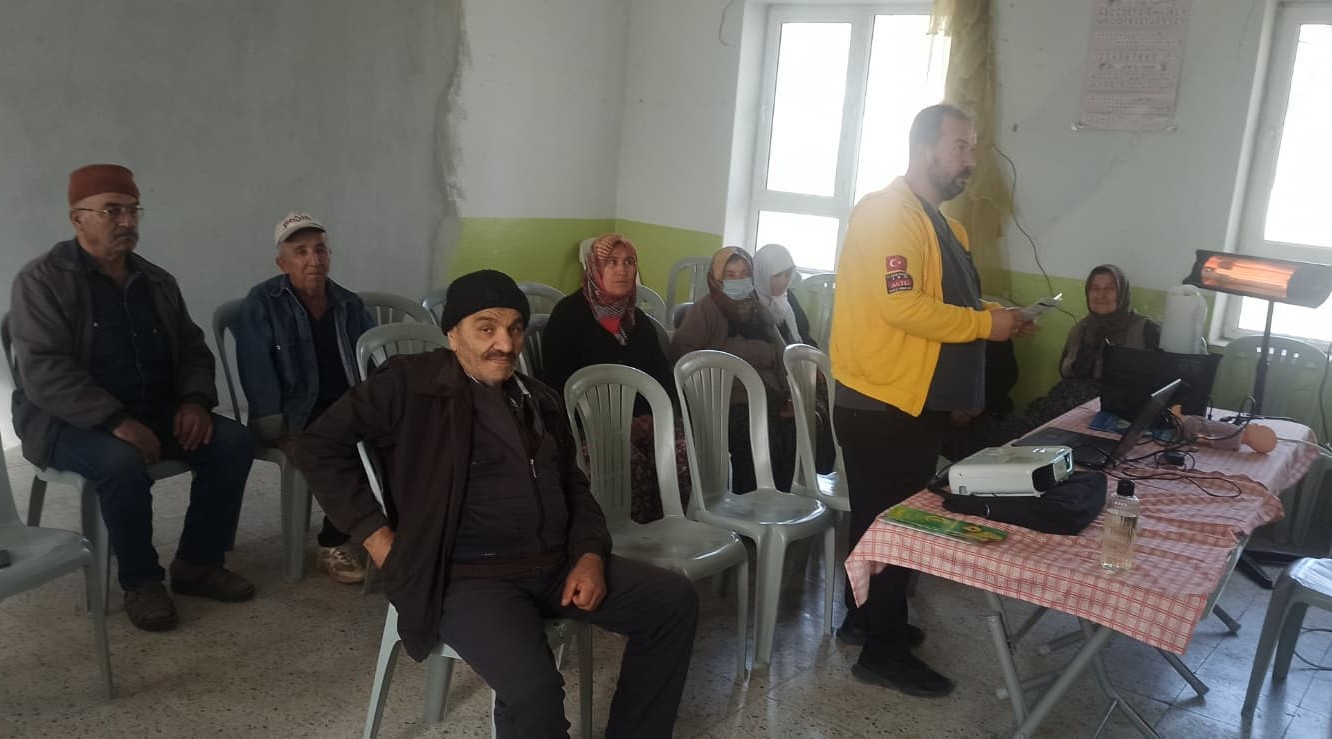 Köy sakinlerine, acil durumlarda doğru davranış biçimleri ve korunma yolları detaylı şekilde anlatıldı. Eğitimlere katılamayan vatandaşların da bilgilendirilmesi için köyün çeşitli noktalarına afişler asıldı, ayrıca köy muhtarı Mehmet Erdoğan’a broşürler teslim edilerek bilgiye erişim kolaylaştırıldı.