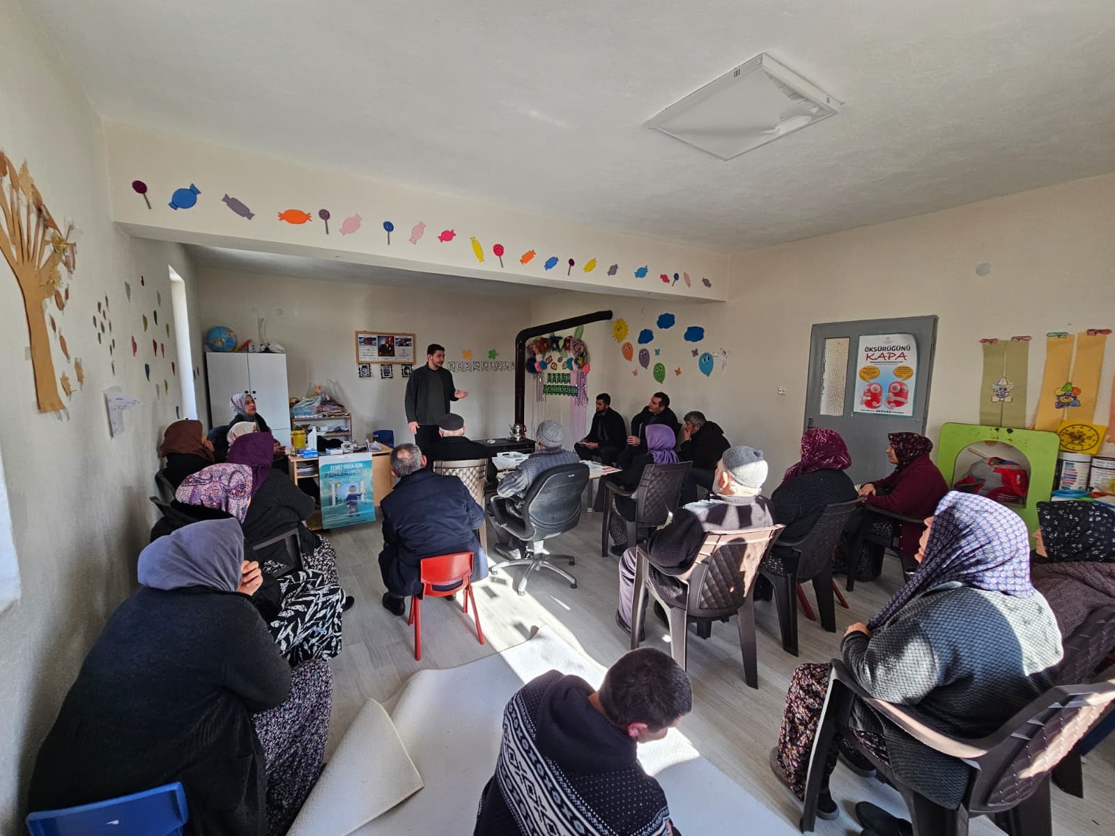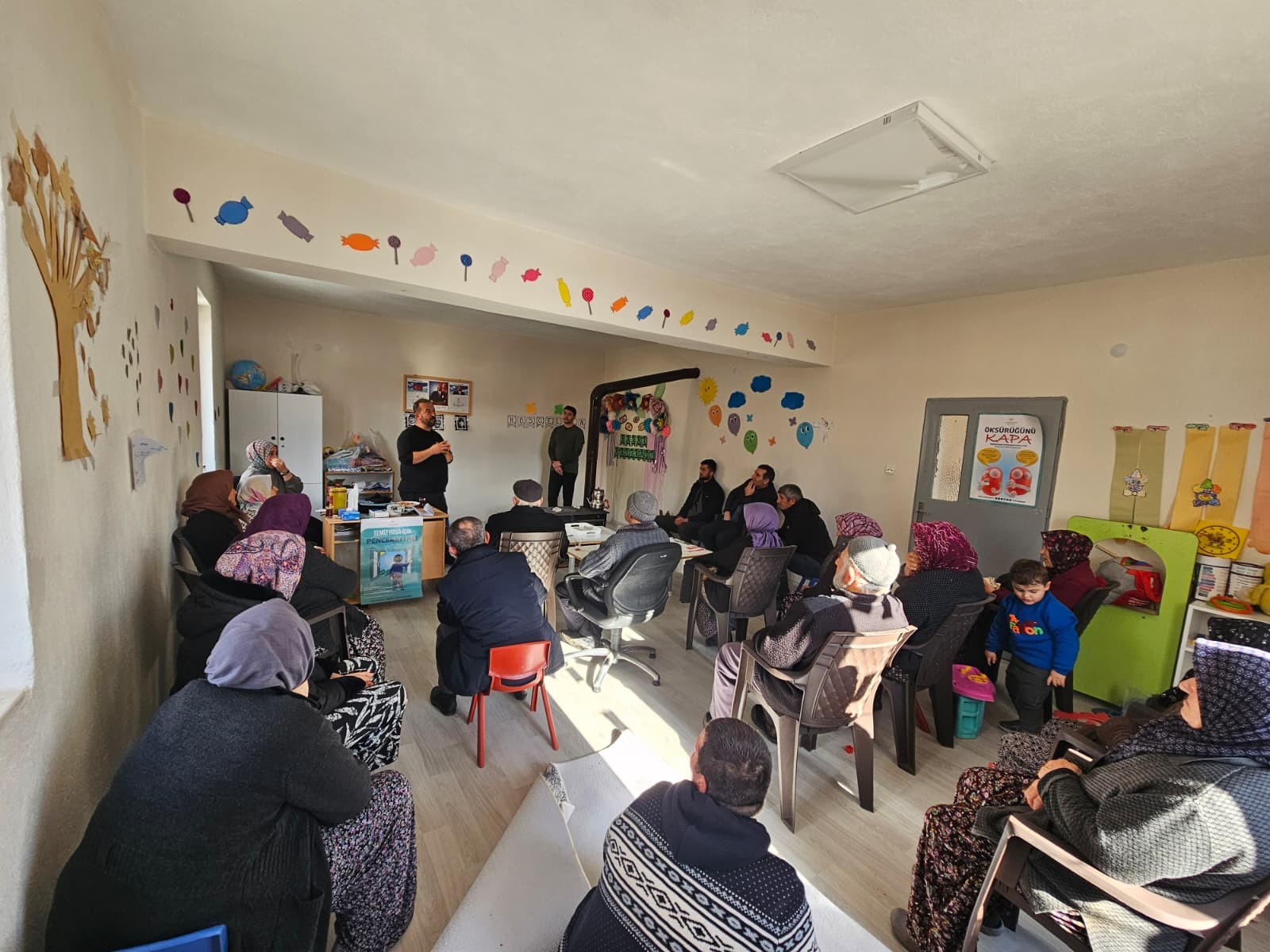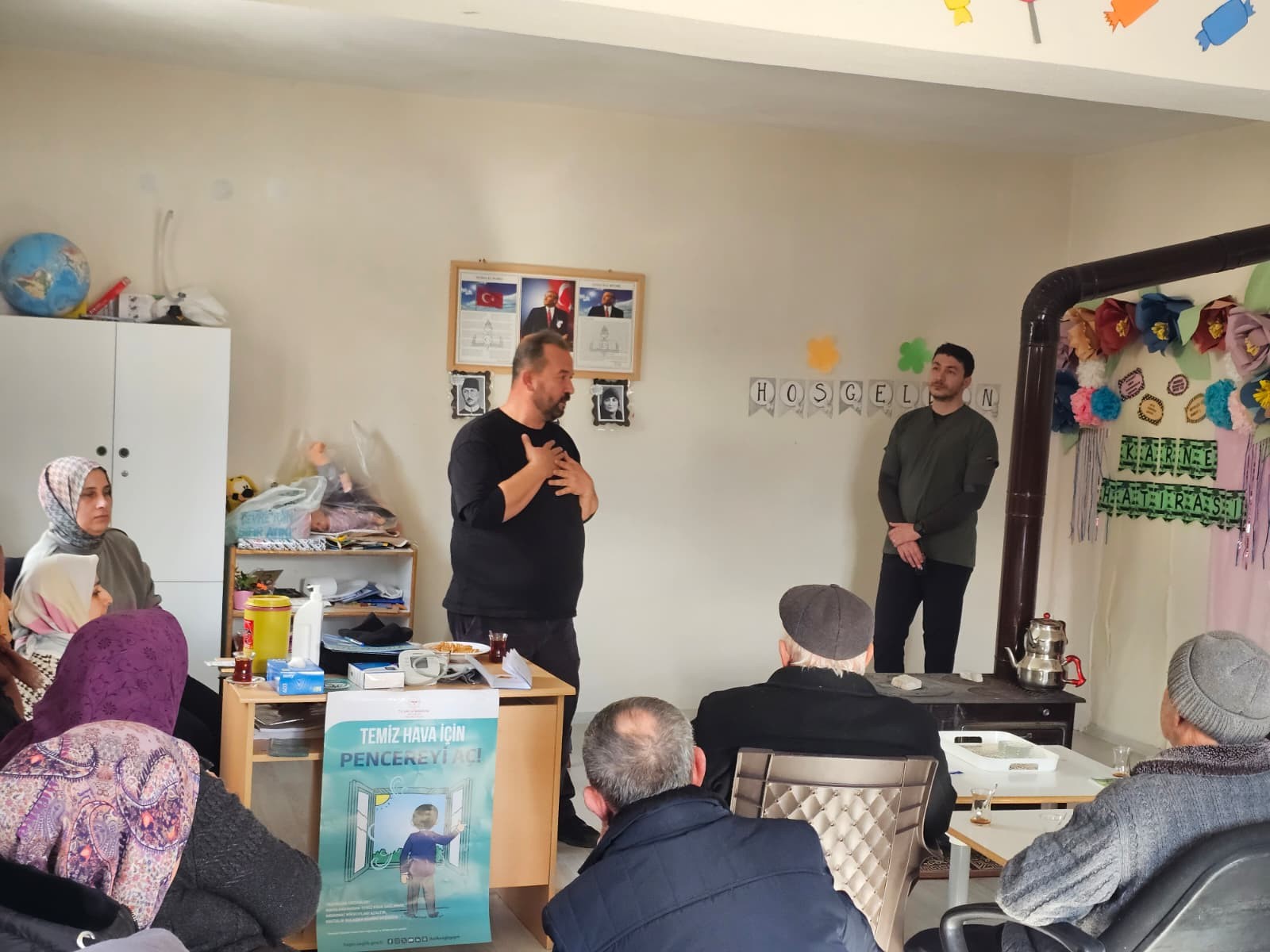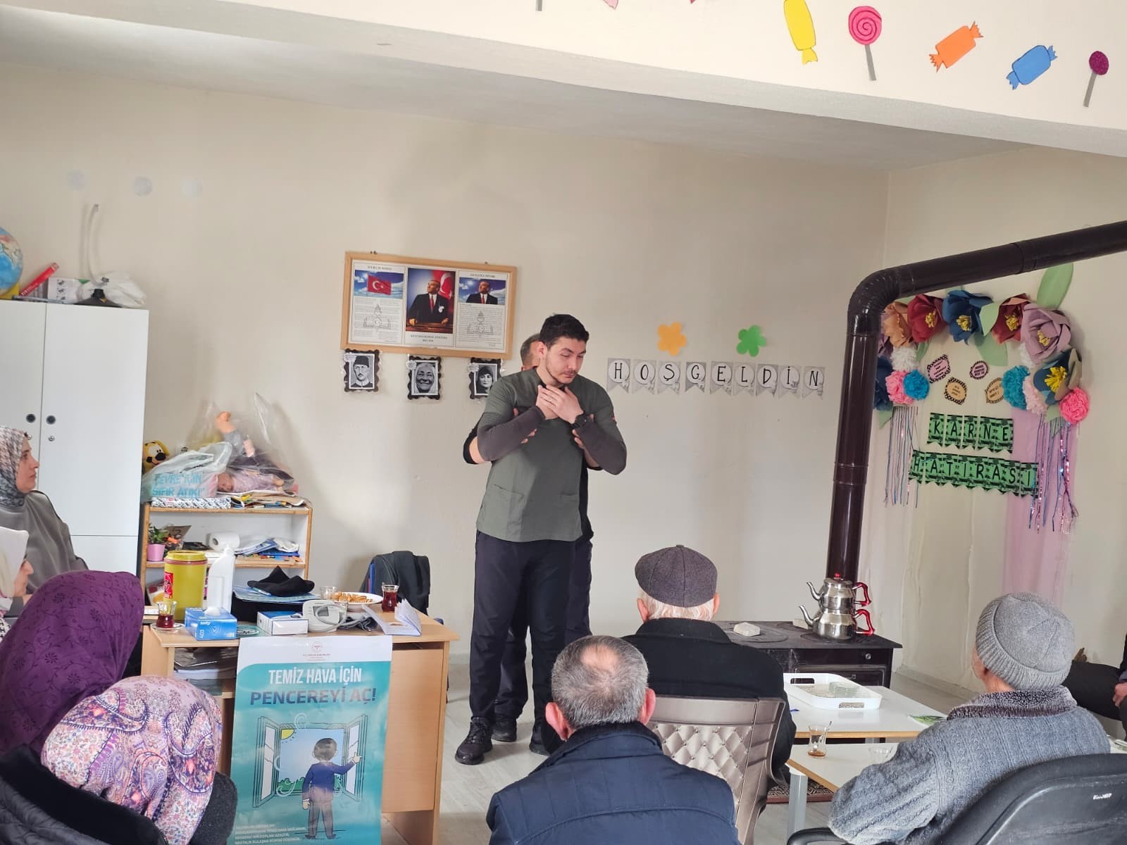 9 Ocak 2026 tarihinde düzenlenen çalışmada, Dr. Burak Kuşcu ve Sağlık Memuru Hüseyin Celil tarafından ilk yardım uygulamaları ile karbonmonoksit (soba) zehirlenmesine karşı alınması gereken önlemler hakkında bilgilendirme yapıldı. Eğitimde, soba zehirlenmelerinin belirtileri ve doğru müdahale yöntemleri ele alınırken, vatandaşların soruları da yanıtlandı.