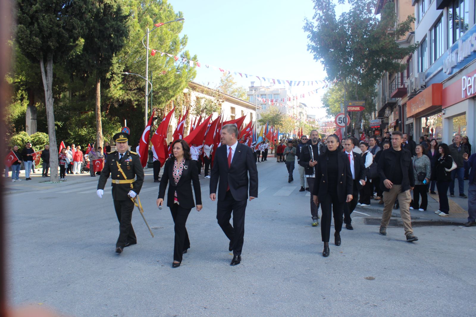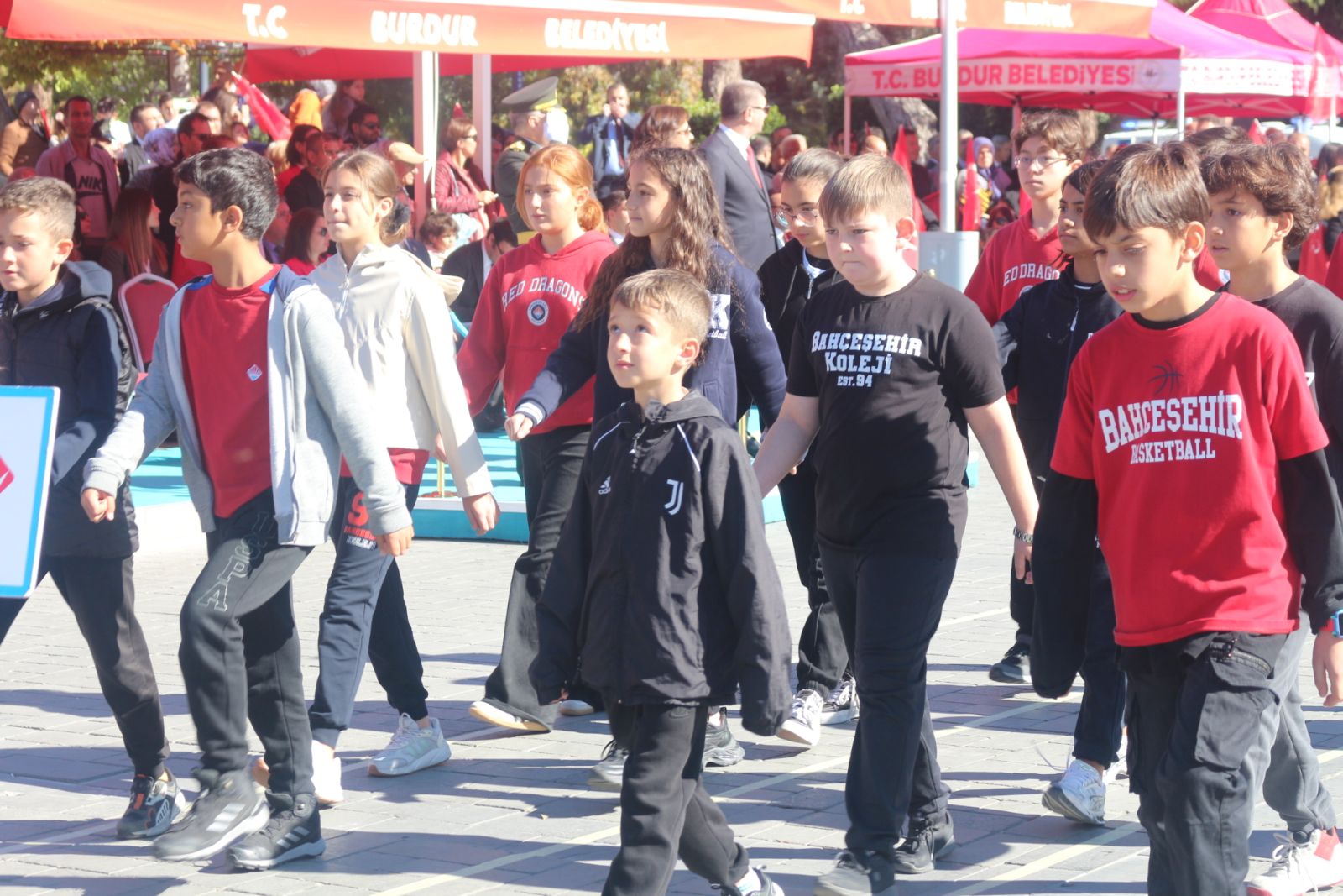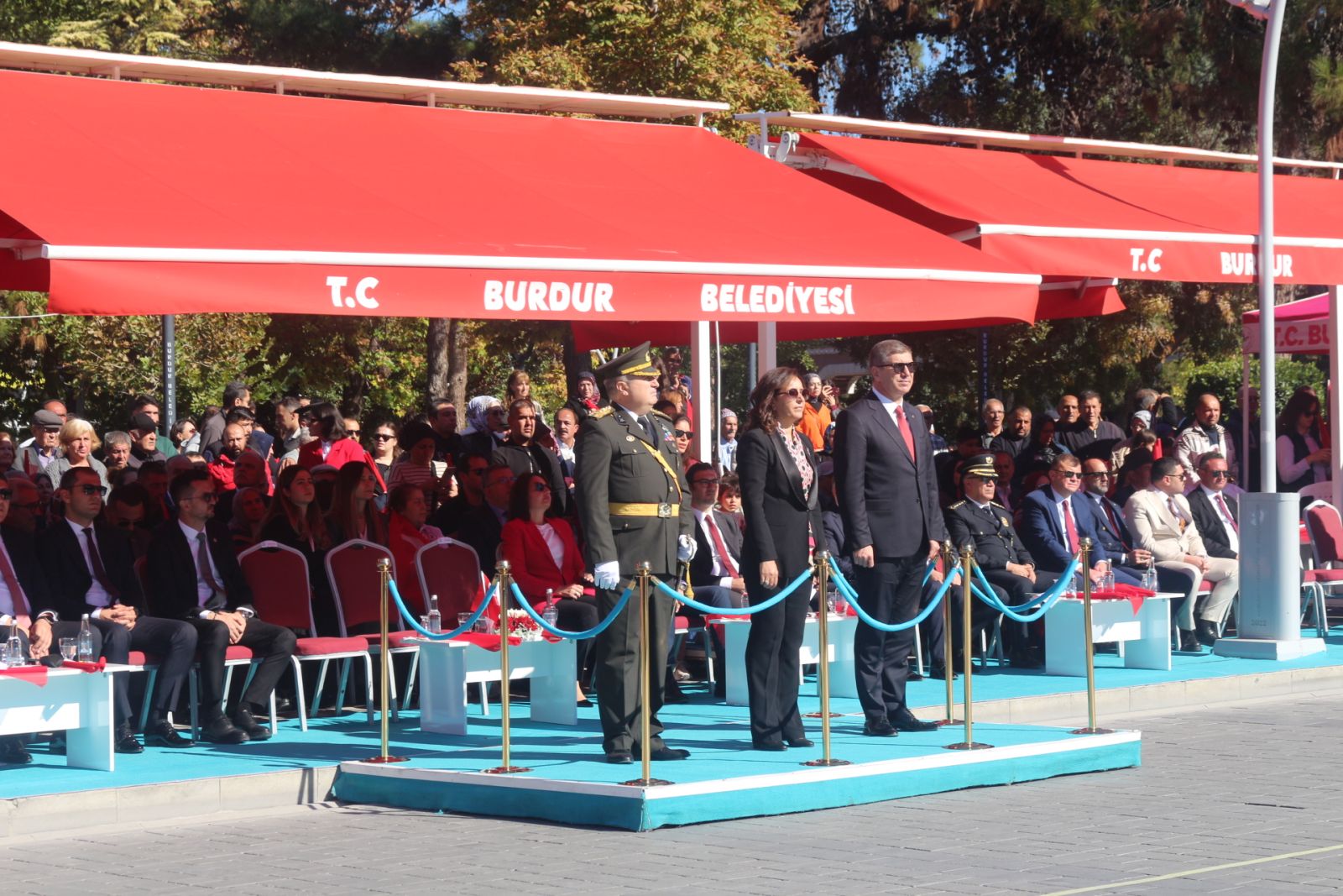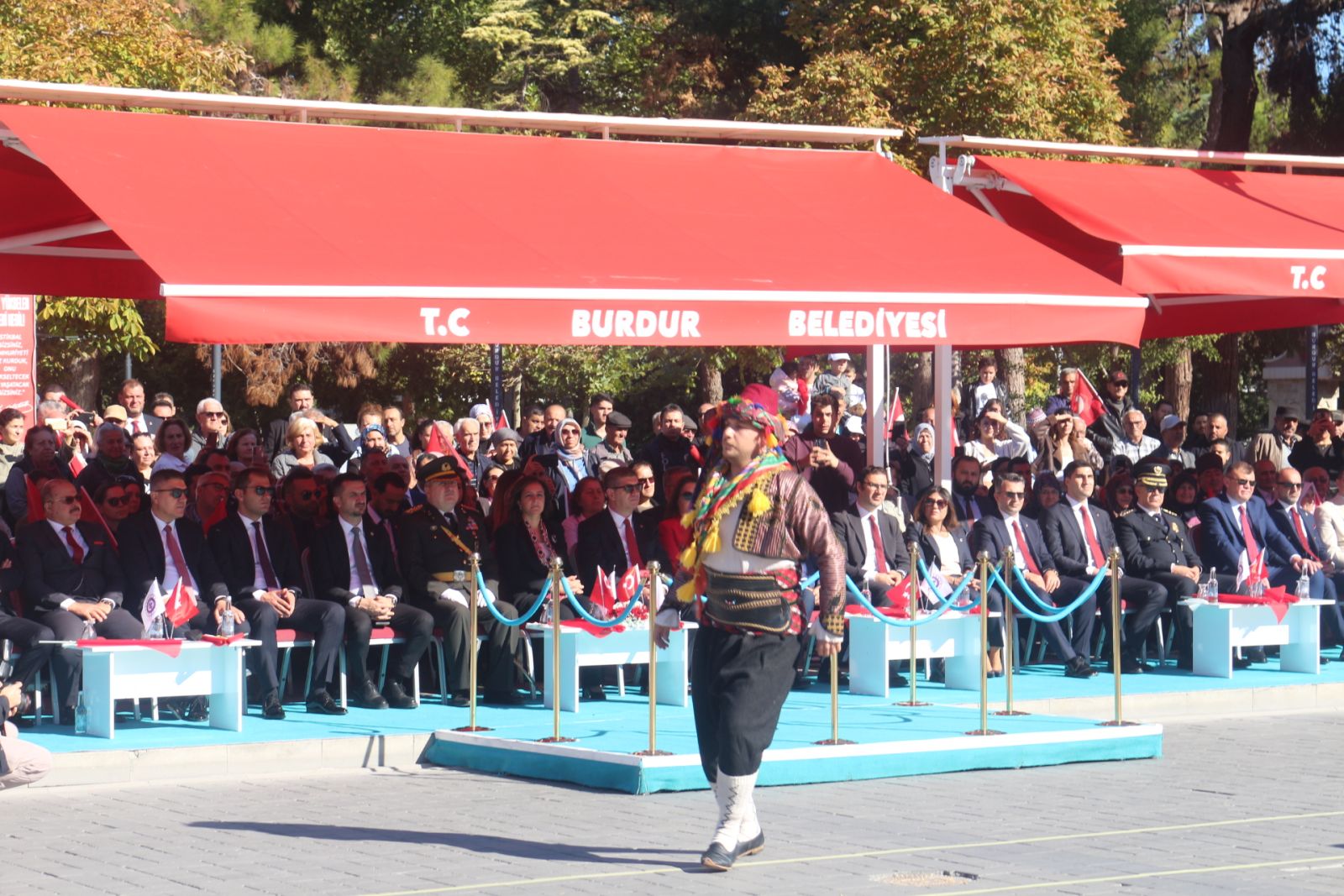 Burdur Valisi Tülay Baydar Bilgihan, Burdur Garnizon Komutanı Toplu Albay Metin Çelebi, Burdur Belediye Başkanı Ali Orkun Ercengiz ile birlikte halkın bayramını kutlamasının ardından prokol konuşmaları yapıldı. Kutlamalarda Cumhurbaşkanı Recep Tayyip Erdoğan’ın Cumhuriyet bayramı mesajları okundu, Burdur Valisi Tülay Baydar Bilgihan, günün anlam ve önemini belirten konuşma yaptı. Okul öğrencilerinin Cumhuriyet Bayramı şiirlerini okuduğu kutlamalarda Burdur Mehmet Akif Ersoy Üniversitesi Halk oyunları ekibi gösteriler yaptı, öğrencileri jimnastik gösterilerinde bulundu.