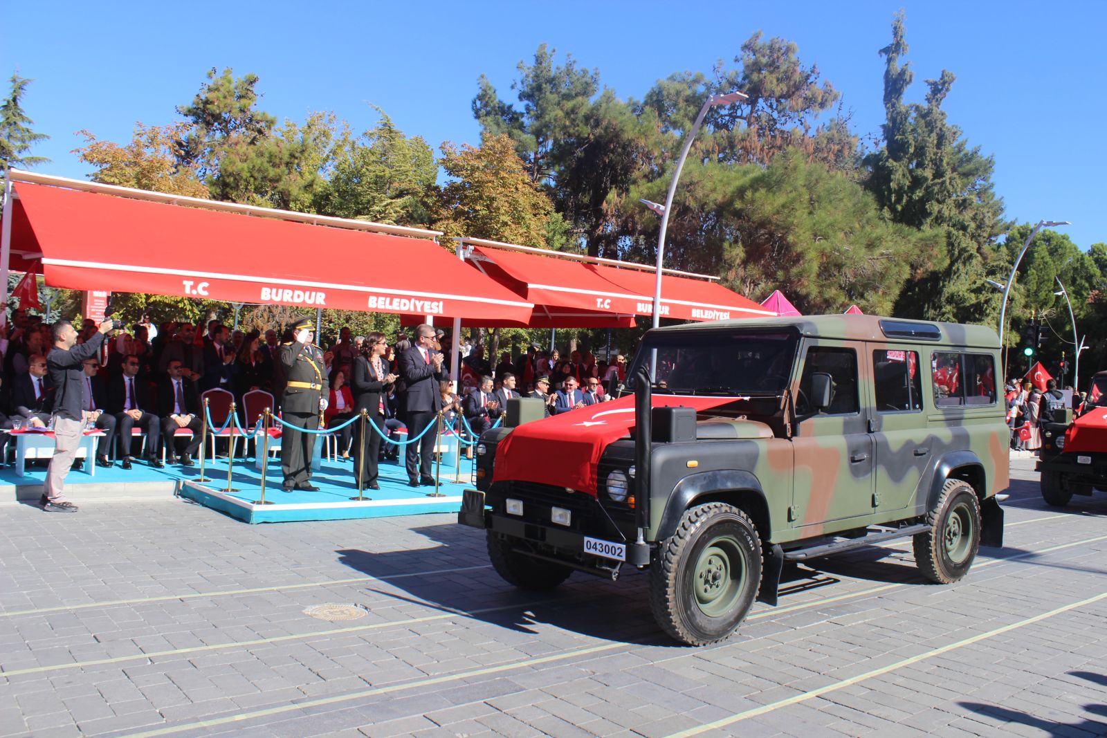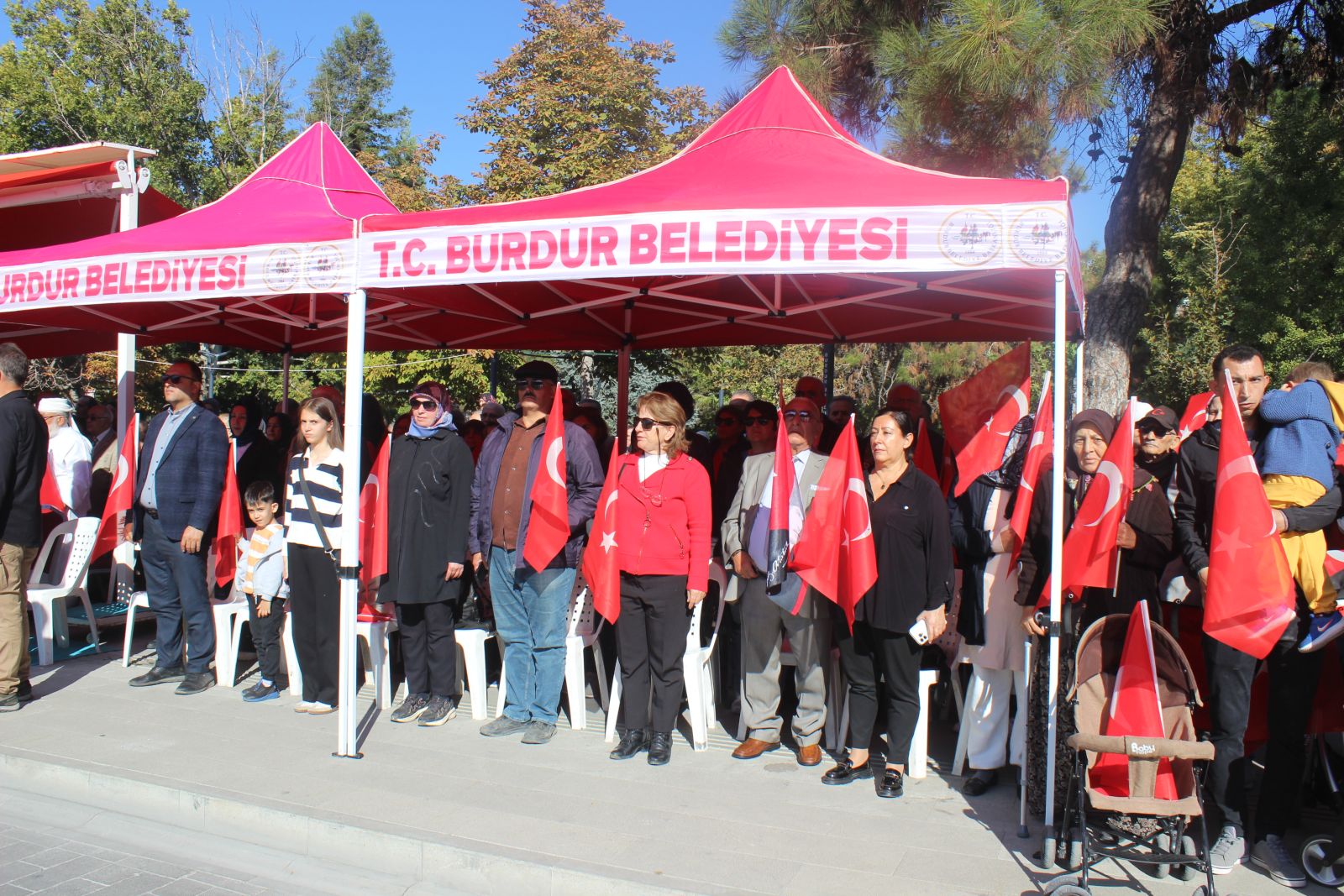 Burdur Valiliğince Burdur Cumhuriyet meydanında düzenlenen kutlamalar saat 10.30’da Ulu Önder Mustafa Kemal Atatürk ve tüm şehitlerimizi için saygı duruşu ve istiklal Marşımızın okunması ile başladı.