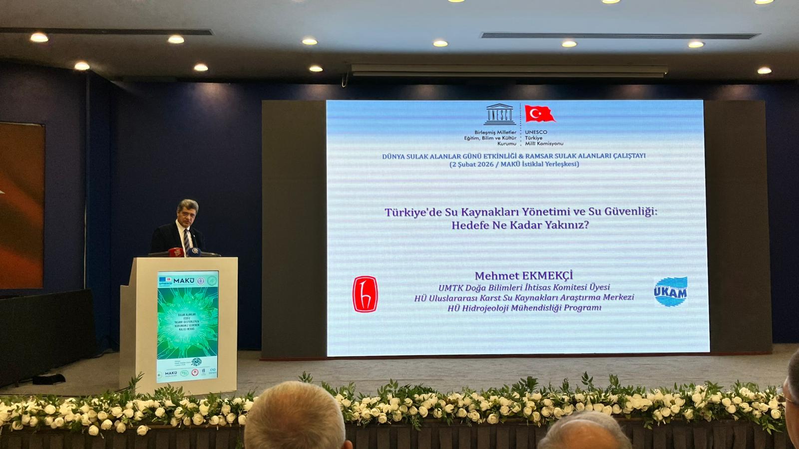 Konuşmaların ardından UNESCO Türkiye Milli Komisyonu Başkan Vekili Prof. Doç. Nizamettin Kazancı tarafından Sulak Alanlar ve Doğa Korumada Uluslararası Yaklaşımlar ile Hacettepe Üniversitesi Hidrojeoloji Mühendisi tarafından Türkiye’de Su kaynakları Yönetimi ve Su Güvenliği: Hedefe Ne Kadar Yakınız?” adlı sunumlarını gerçekleştirdiler.