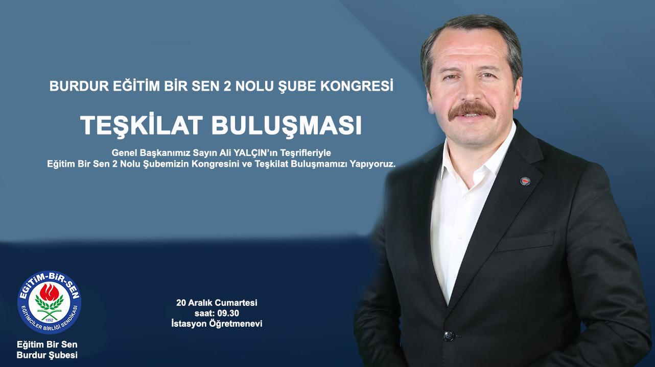 Eğitim Bir-Sen Burdur 2 No’lu Şube, kongre süreci kapsamında teşkilat buluşması düzenlemeye hazırlanıyor. Genel Başkan Ali Yalçın’ın katılımıyla gerçekleştirilecek program, 20 Aralık Cumartesi günü saat 09.30’da İstasyon Öğretmenevi’nde yapılacak.