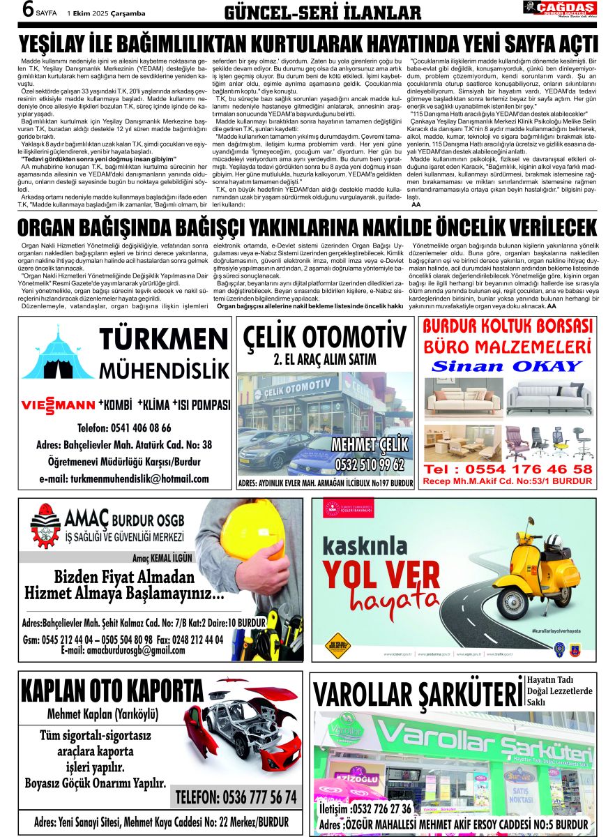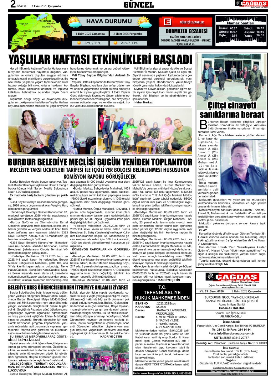 GAZETEMİZ 1 EKİM 2025 TARİHLİ SAYISI