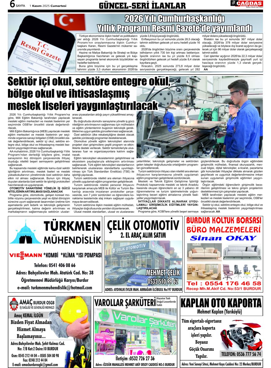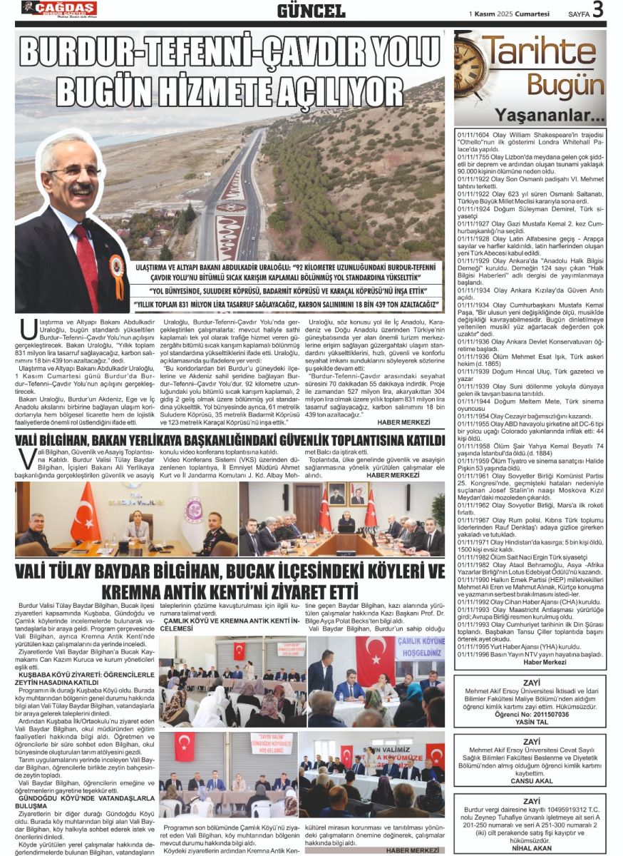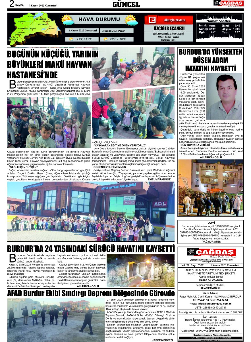 GAZETEMİZ 1 KASIM 2025 TARİHLİ SAYISI