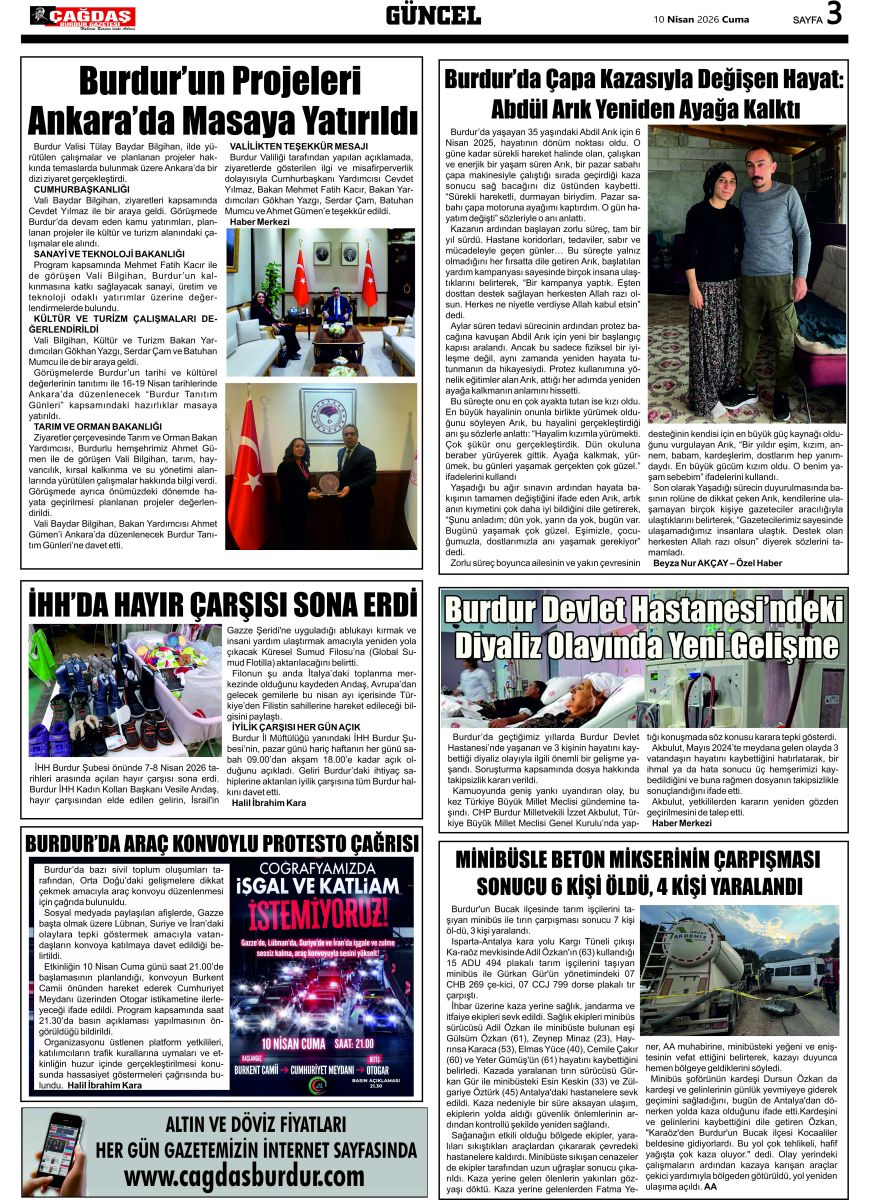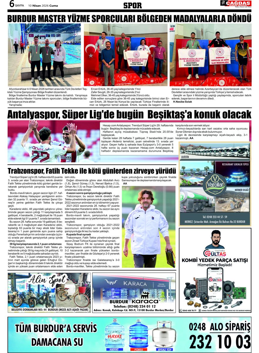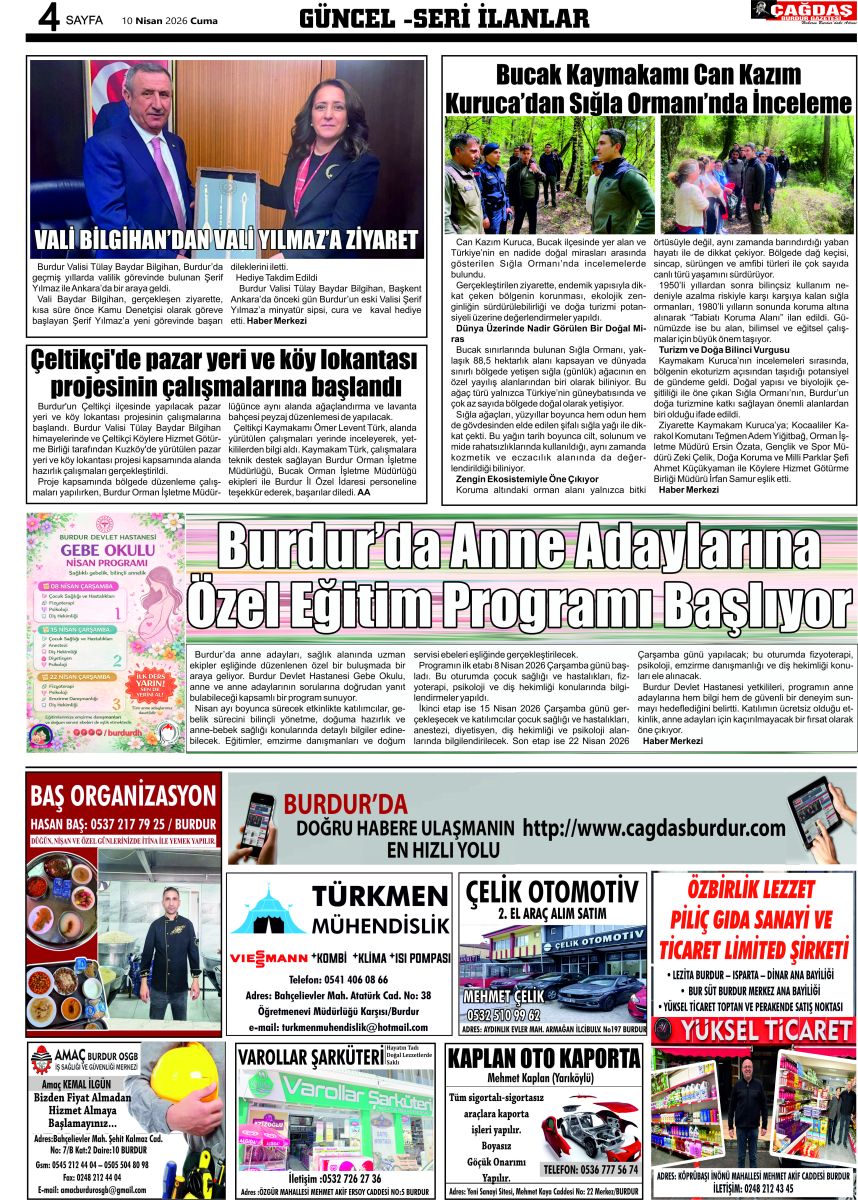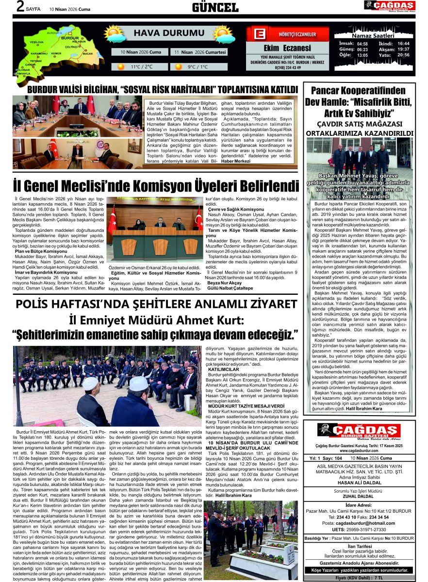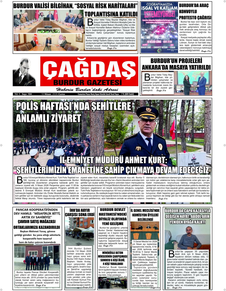 ÇAĞDAŞ BURDUR GAZETESİ'NİN GAZETEMİZ 9 NİSAN 2026 TARİHLİ SAYISI