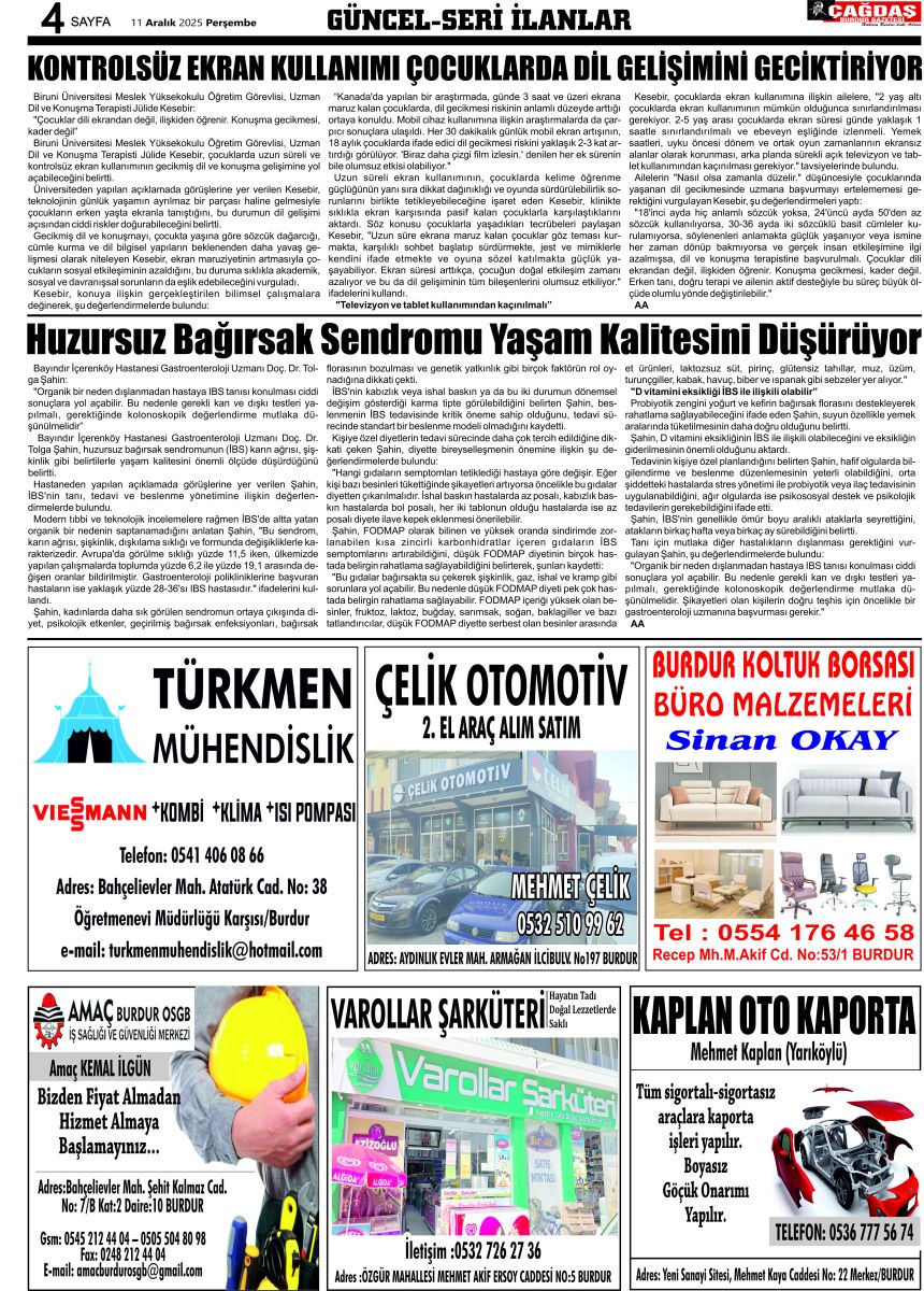 GAZETEMİZ 11 ARALIK 2025 TARİHLİ SAYISI