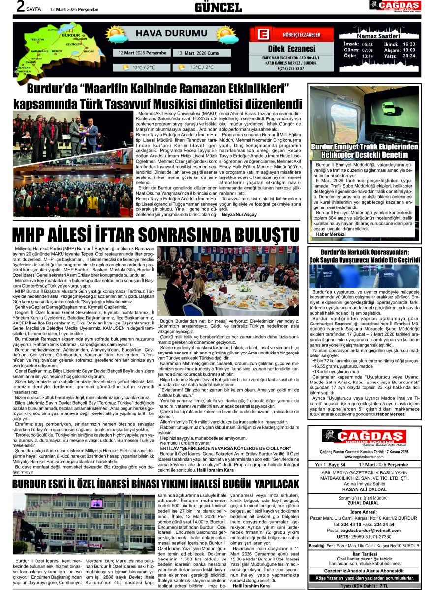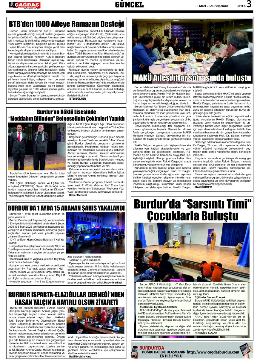 BURDURUN GÜCÜ 12 MART 2026 TARİHLİ SAYISI