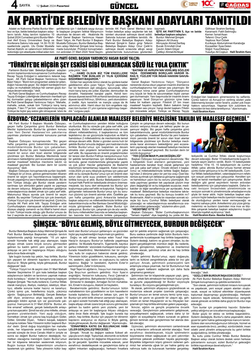 GAZETEMİZ 12 ŞUBAT 2024 TARİHLİ SAYISI