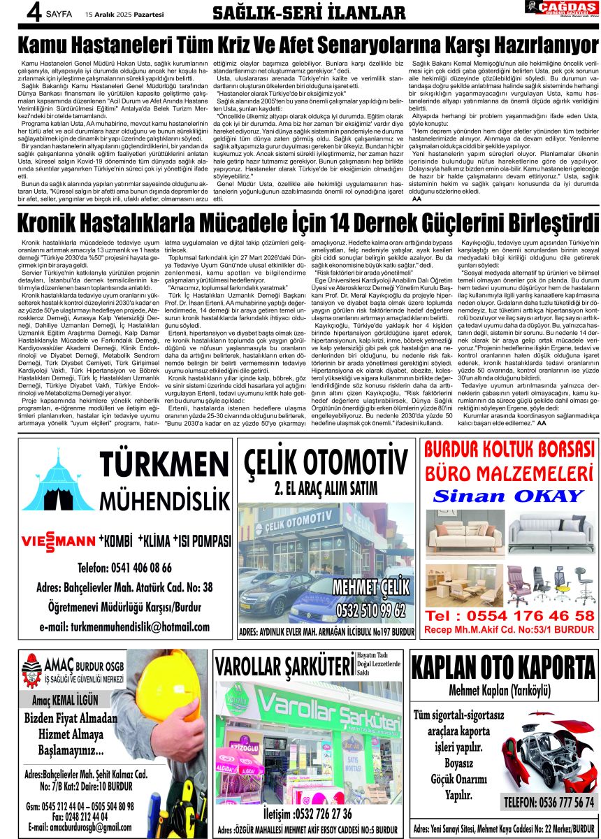 GAZETEMİZ 15 ARALIK 2025 TARİHLİ SAYISI