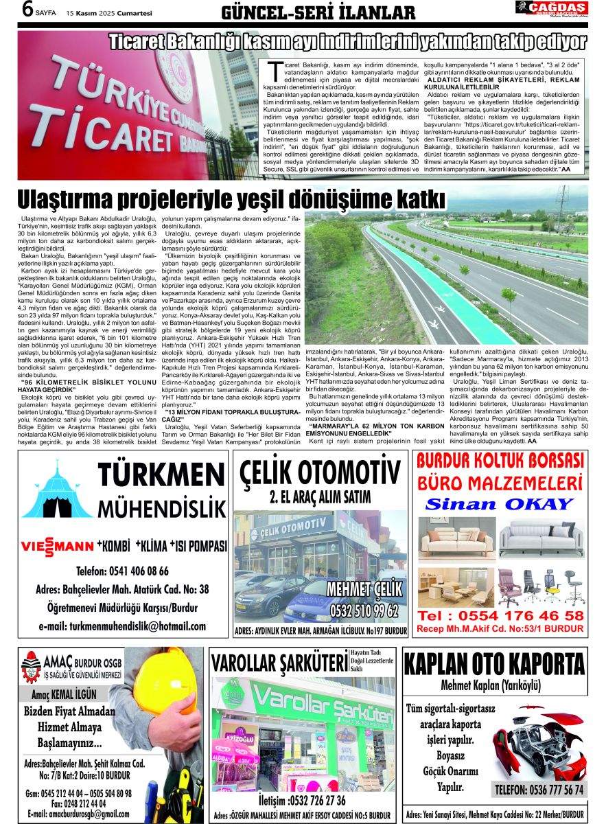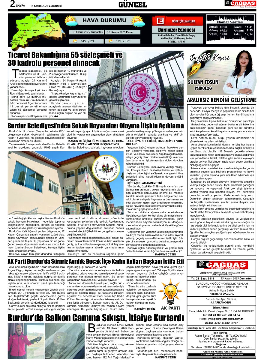GAZETEMİZ 15 KASIM 2025 TARİHLİ SAYISI
