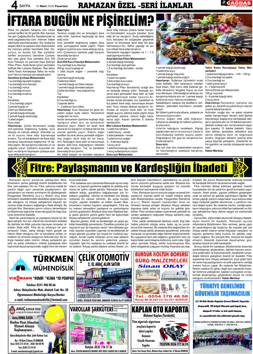 GAZETEMİZ 16 MART 2026 TARİHLİ SAYISI
