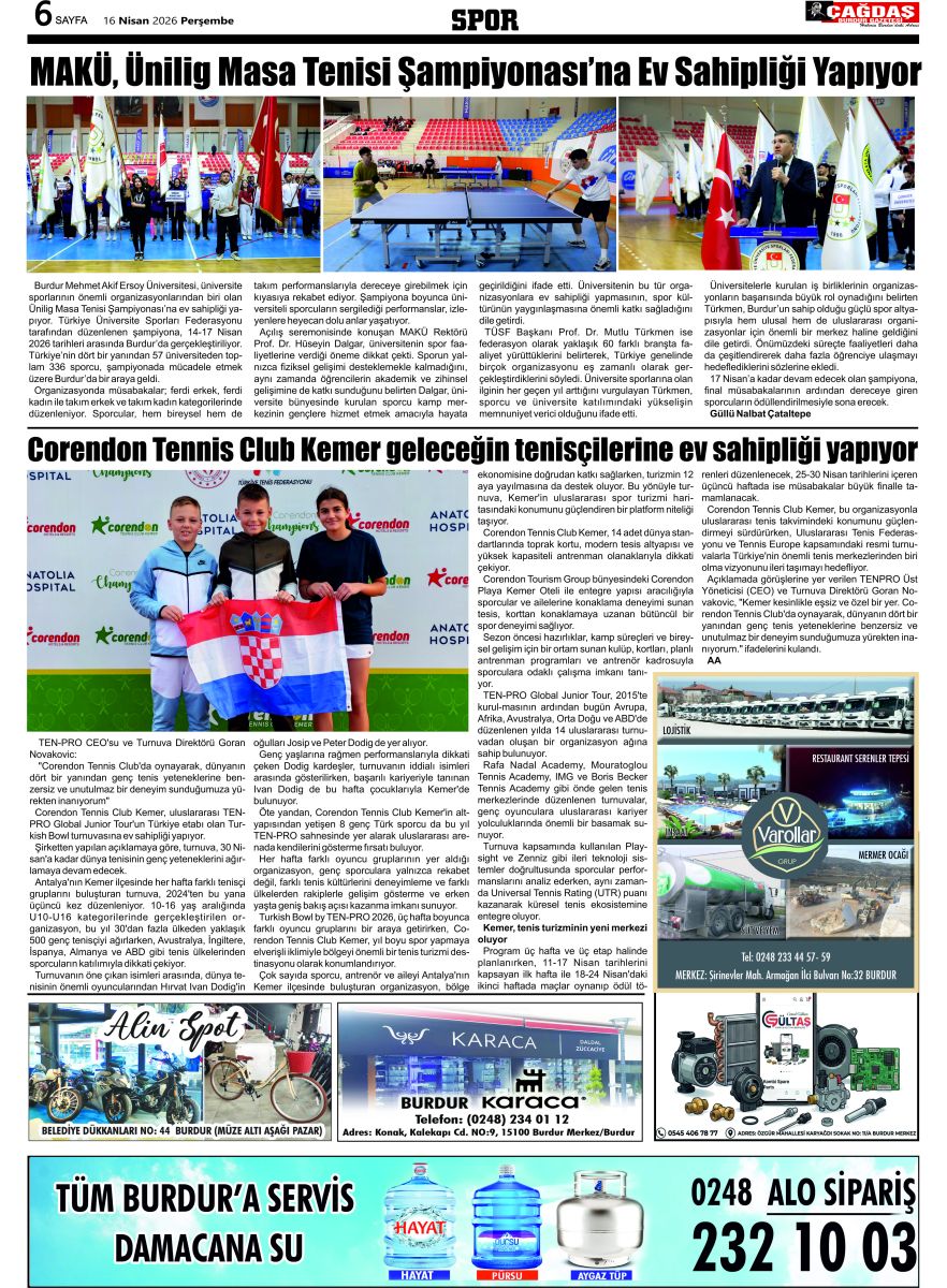 BURDUR'UN GÜCÜ GAZETESİ - GAZETEMİZ 13 NİSAN 2026 TARİHLİ SAYISI