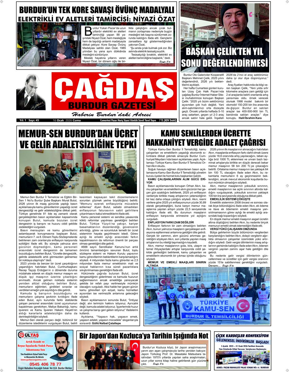 BURDURUN GÜCÜ 16 OCAK 2026 TARİHLİ SAYISI