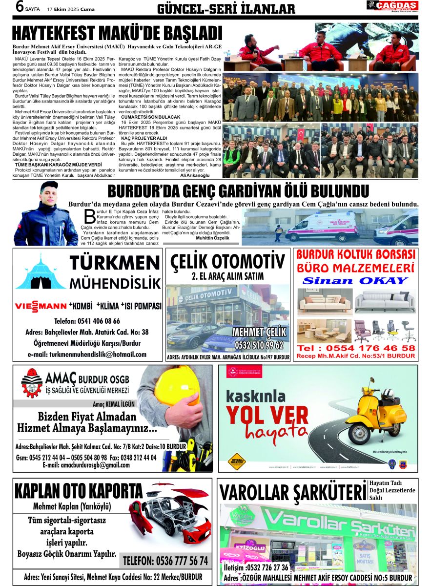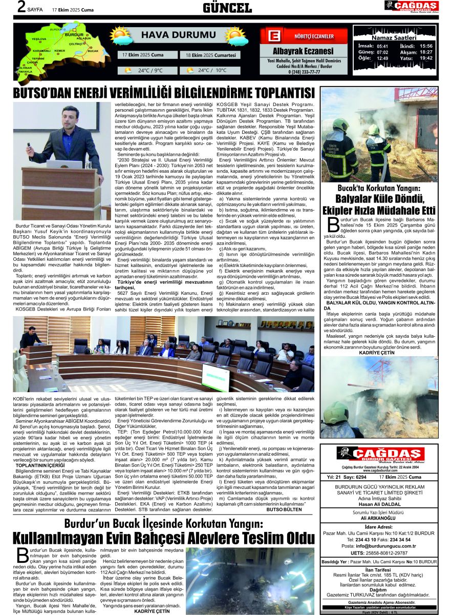 GAZETEMİZ 17 EKİM 2025 TARİHLİ SAYISI