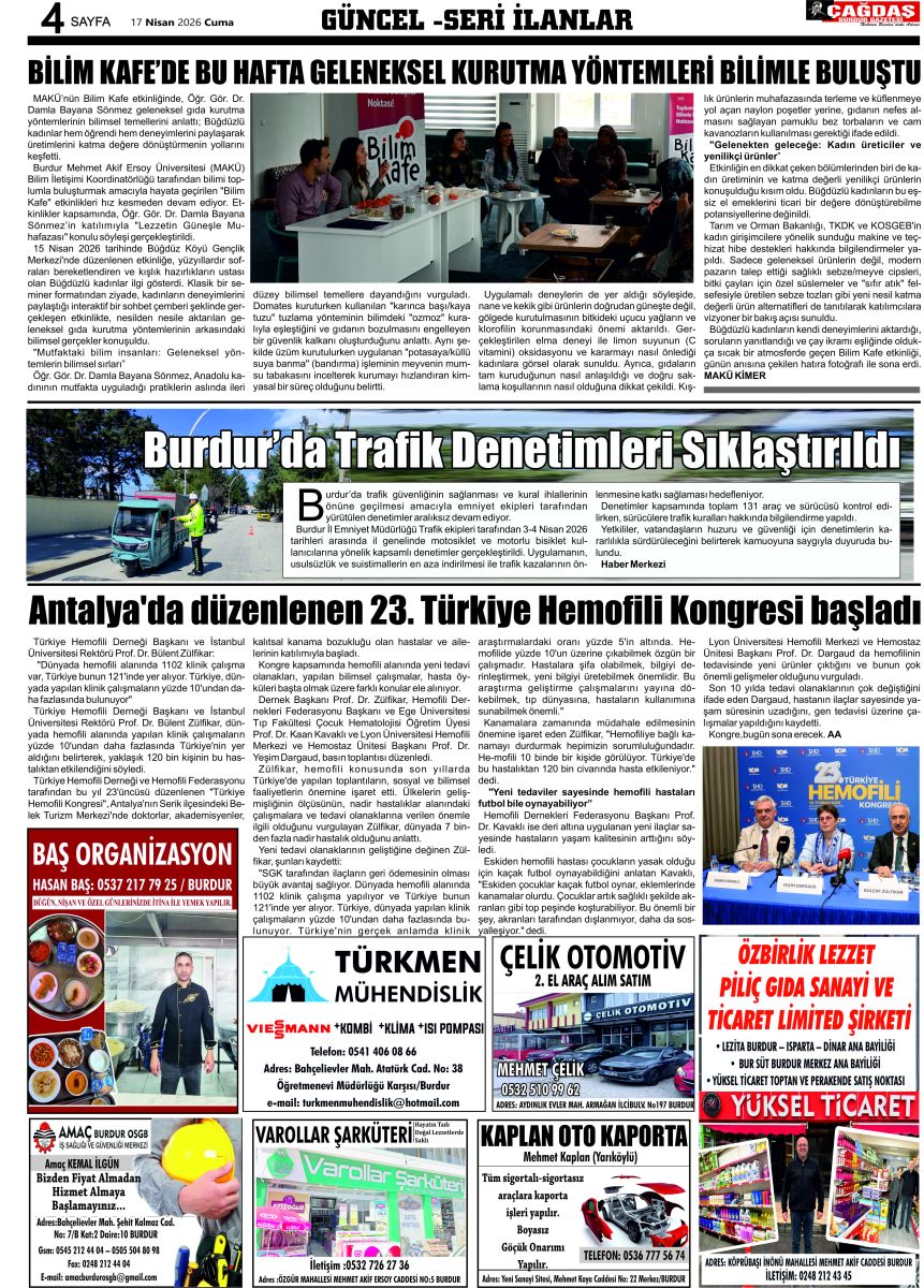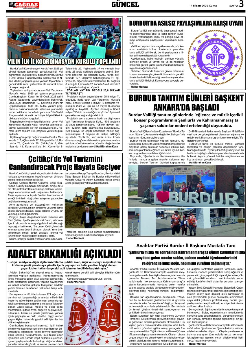 BURDUR'UN GÜCÜ GAZETESİ - GAZETEMİZ 13 NİSAN 2026 TARİHLİ SAYISI