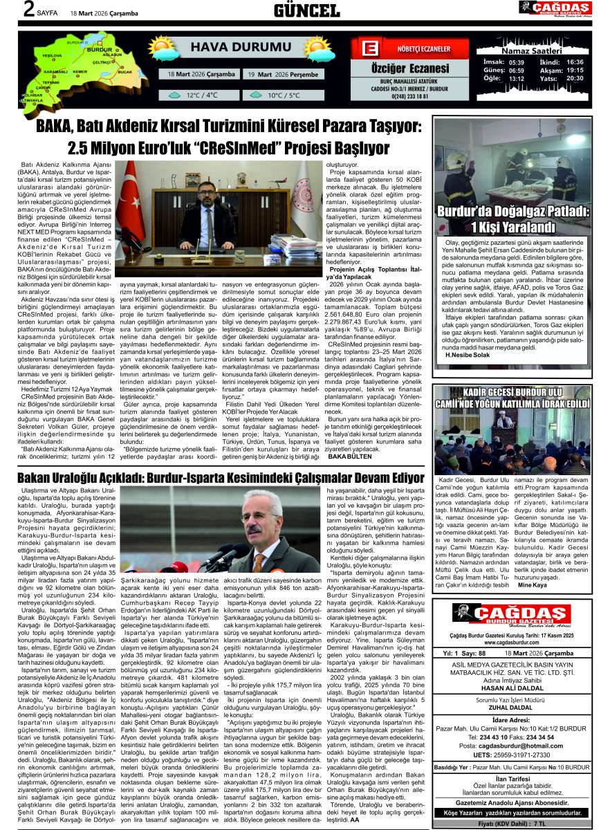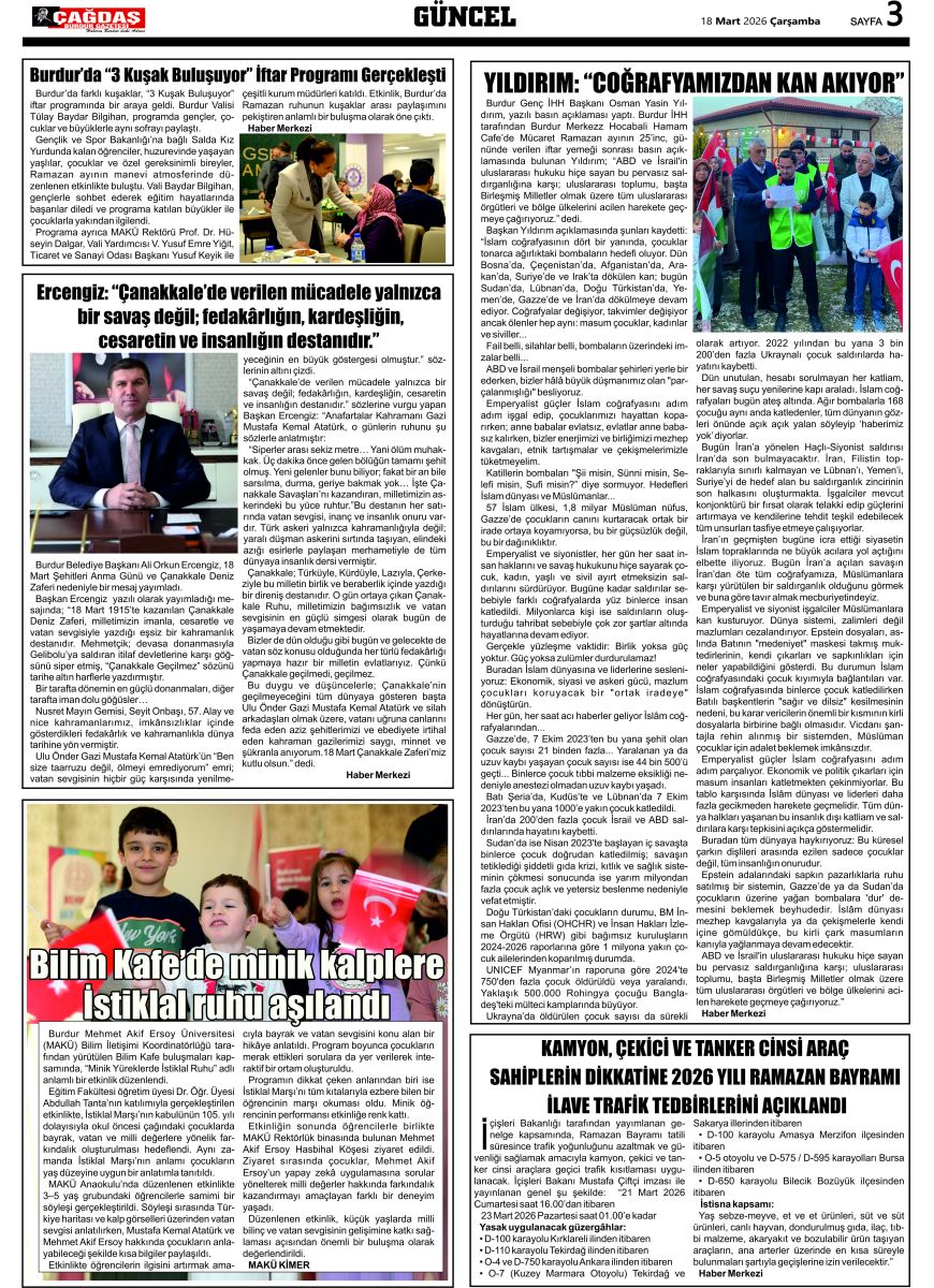 BURDURUN GÜCÜ 18 MART 2026 TARİHLİ SAYISI