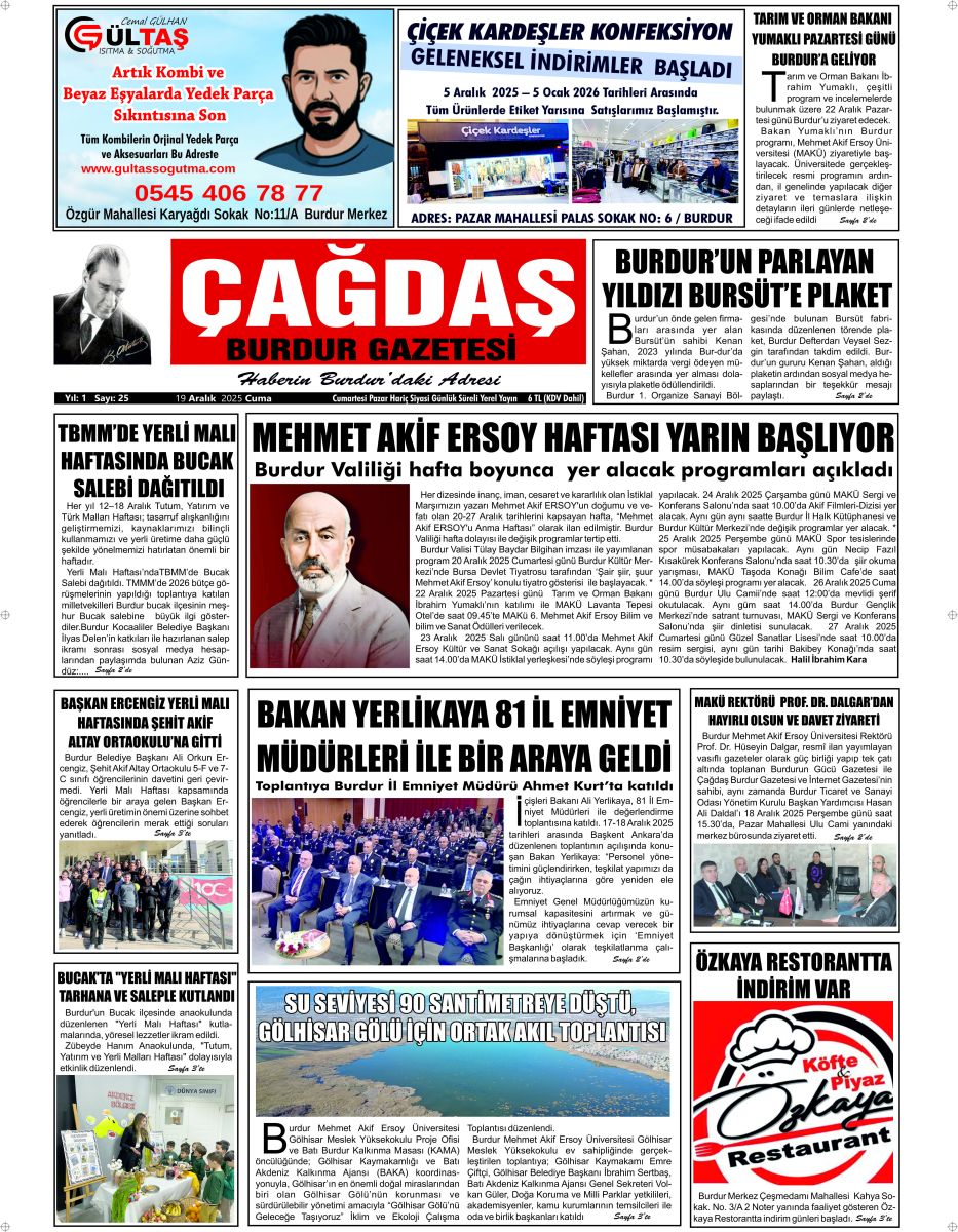 GAZETEMİZ 19 ARALIK 2025 TARİHLİ SAYISI