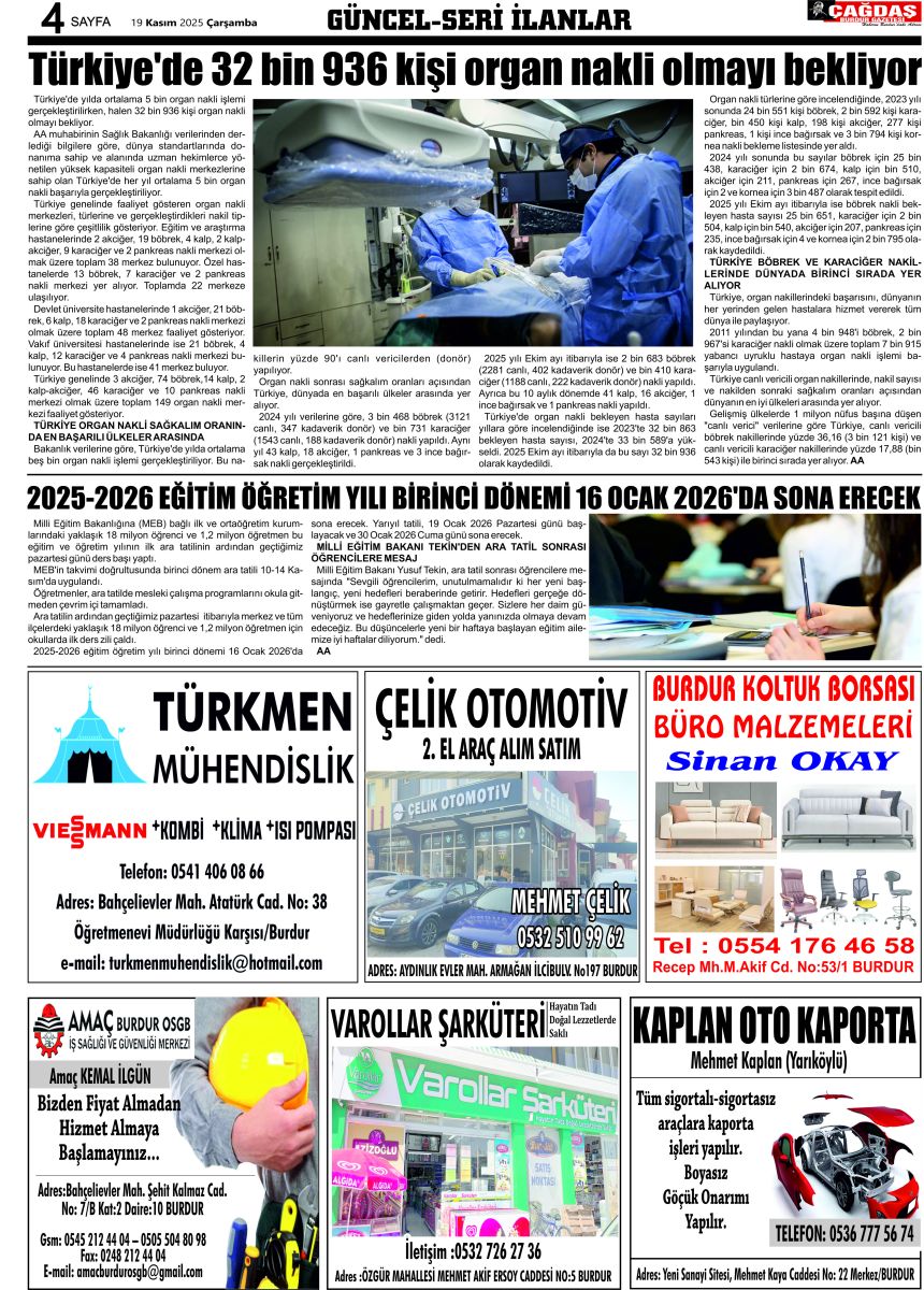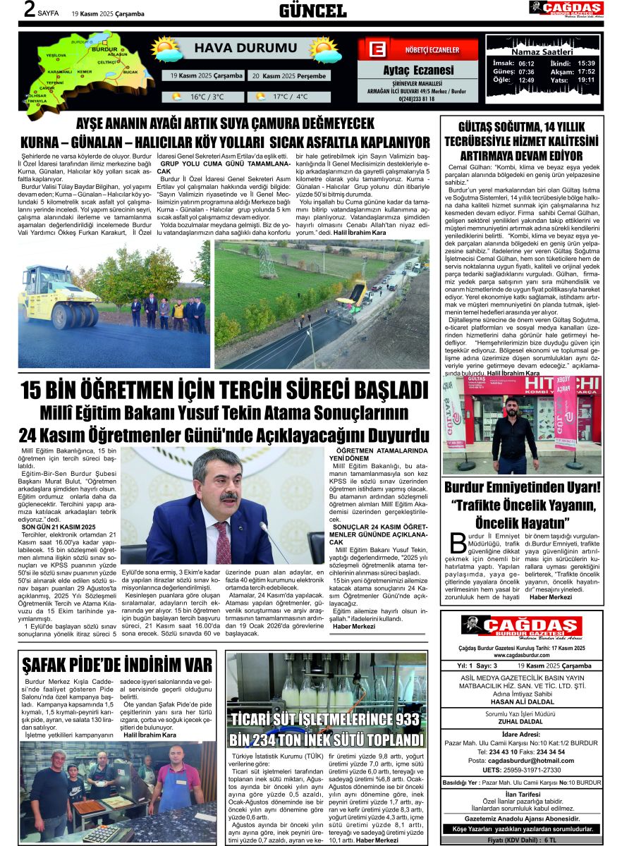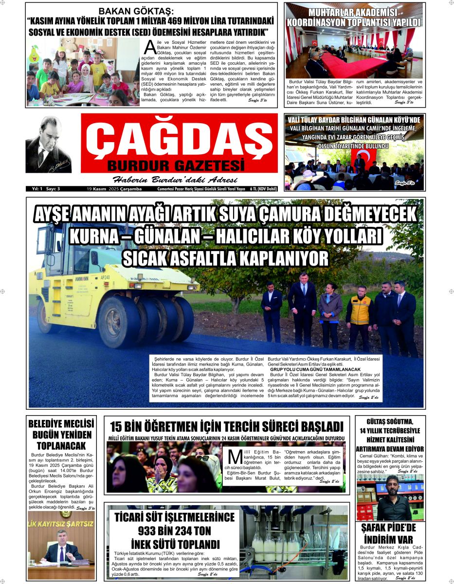 GAZETEMİZ 19 KASIM 2025 TARİHLİ SAYISI