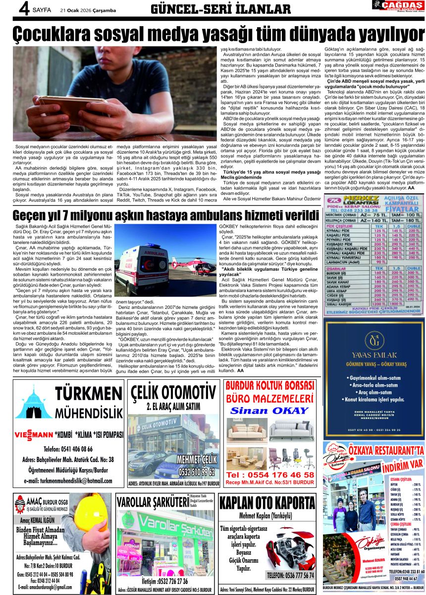 GAZETEMİZ 21 OCAK 2026 TARİHLİ SAYISI