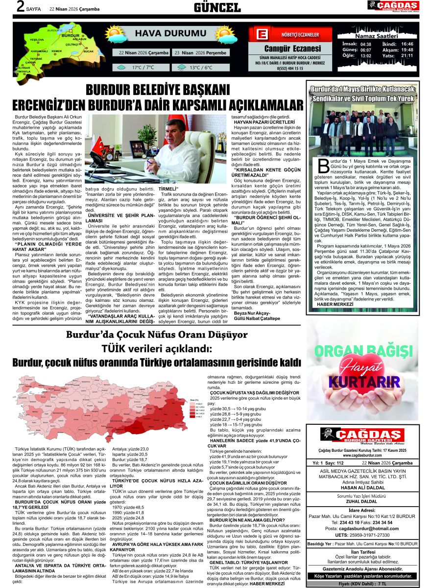 BURDURUN GÜCÜ 22 NİSAN 2026 TARİHLİ SAYISI