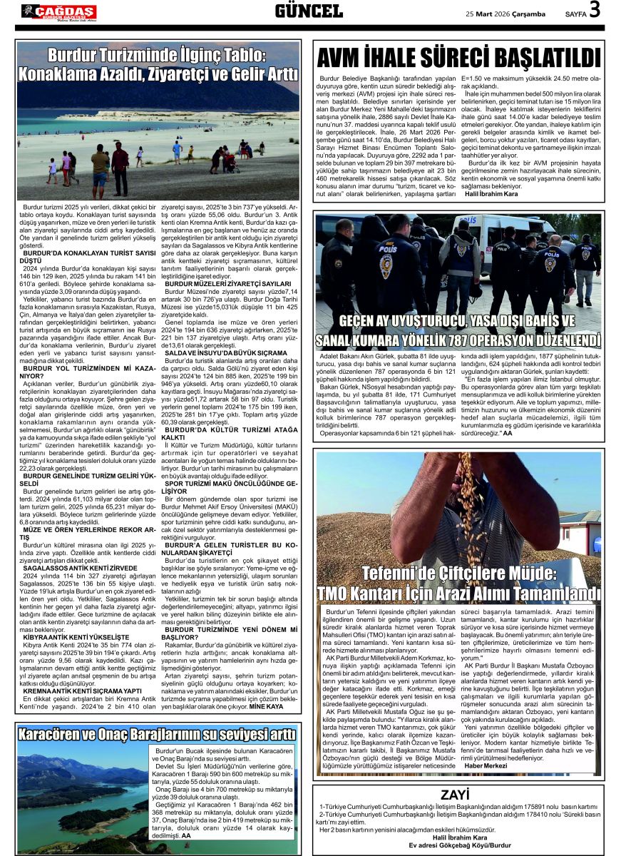 GAZETEMİZ 25 MART 2026 TARİHLİ SAYISI