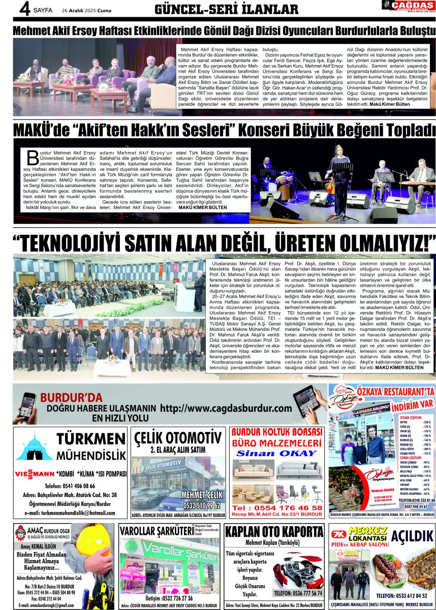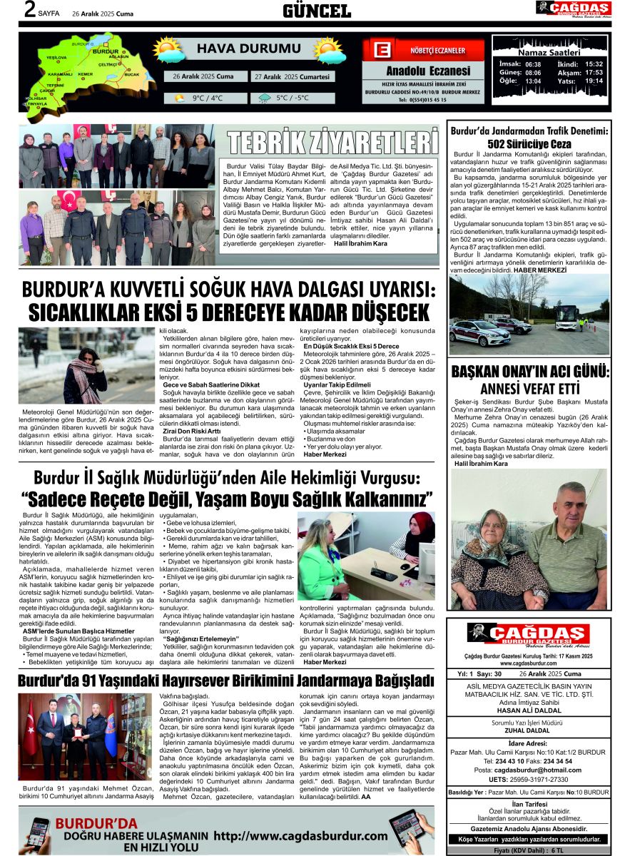 GAZETEMİZ 26 ARALIK 2025 TARİHLİ SAYISI