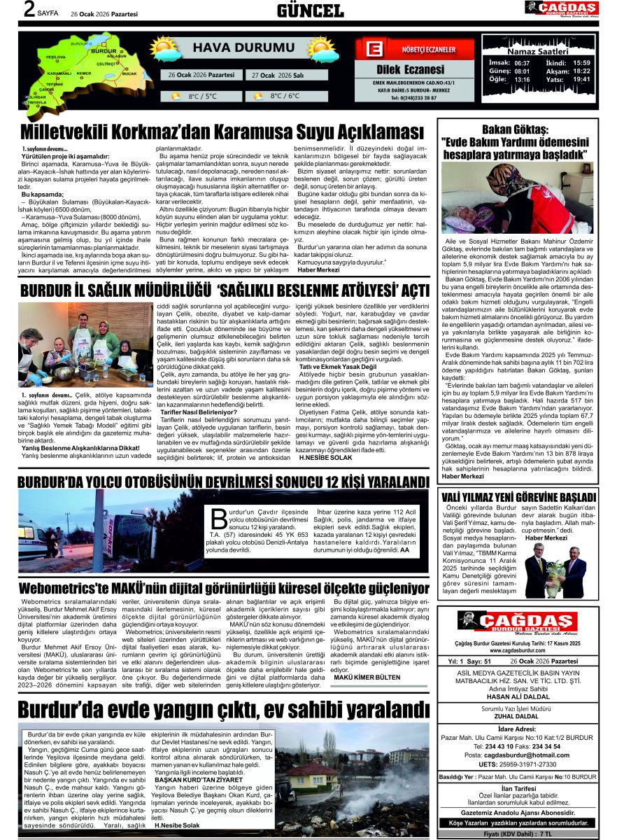 BURDURUN GÜCÜ 26 OCAK 2026 TARİHLİ SAYISI