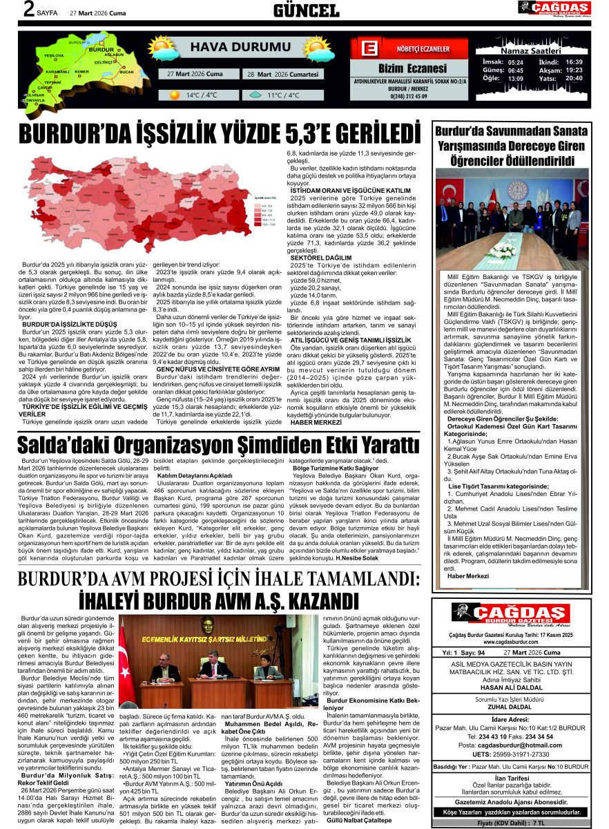 BURDURUN GÜCÜ 27 MART 2026 TARİHLİ SAYISI