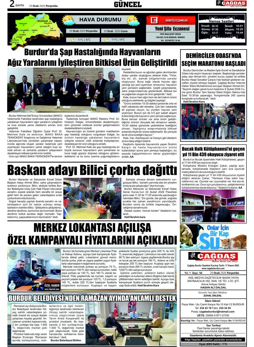 BURDURUN GÜCÜ 29 OCAK 2026 TARİHLİ SAYISI