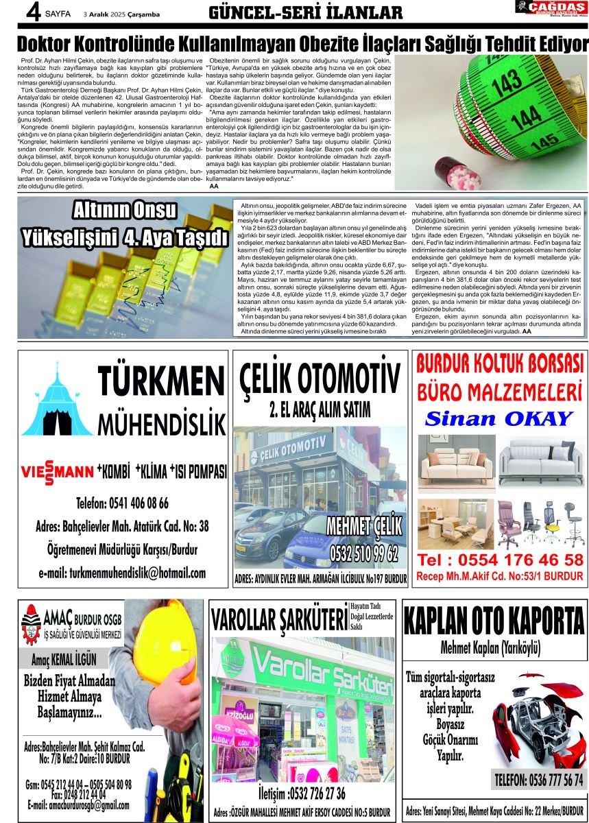 GAZETEMİZ 3 ARALIK 2025 TARİHLİ SAYISI