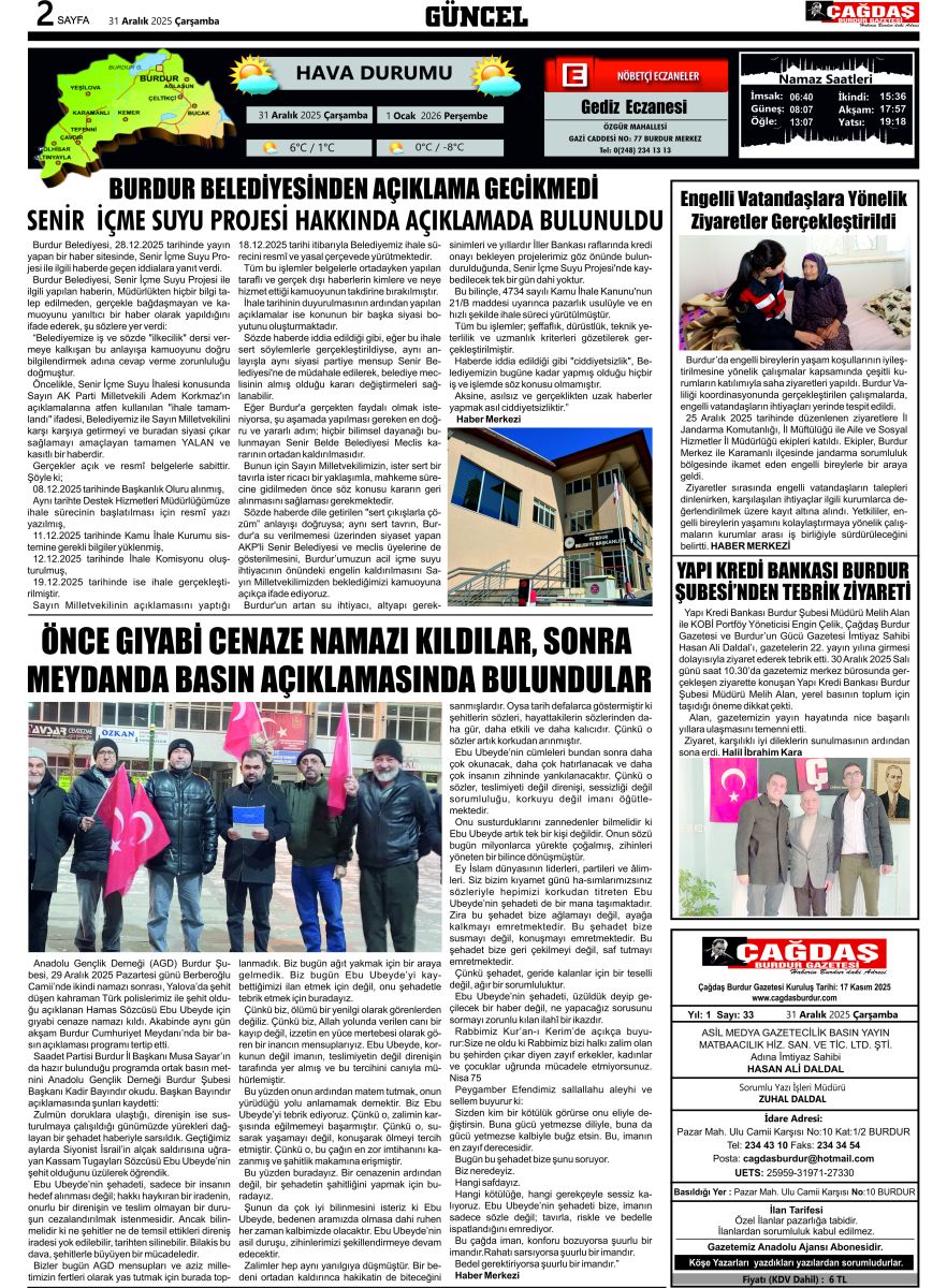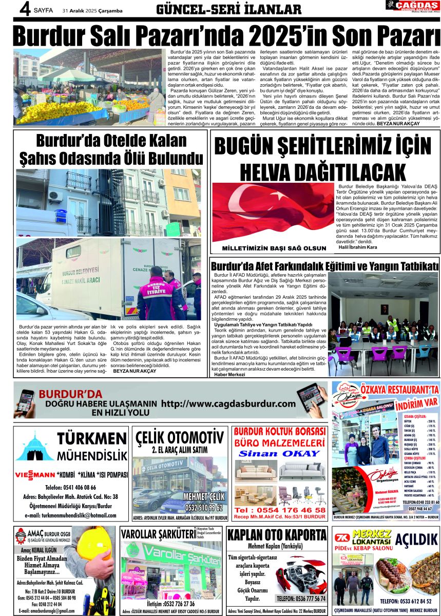 GAZETEMİZ 31 ARALIK 2025 TARİHLİ SAYISI