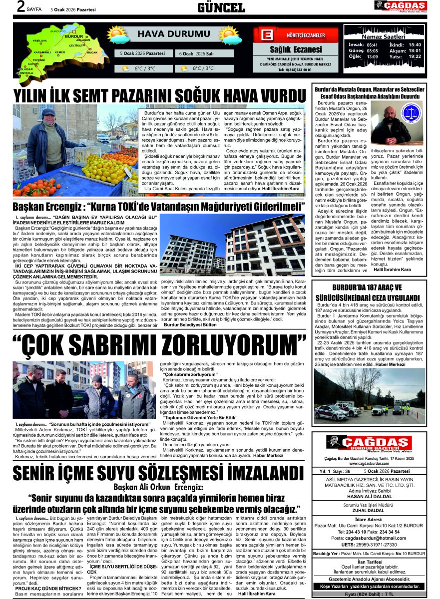 GAZETEMİZ 5 OCAK 2026 TARİHLİ SAYISI