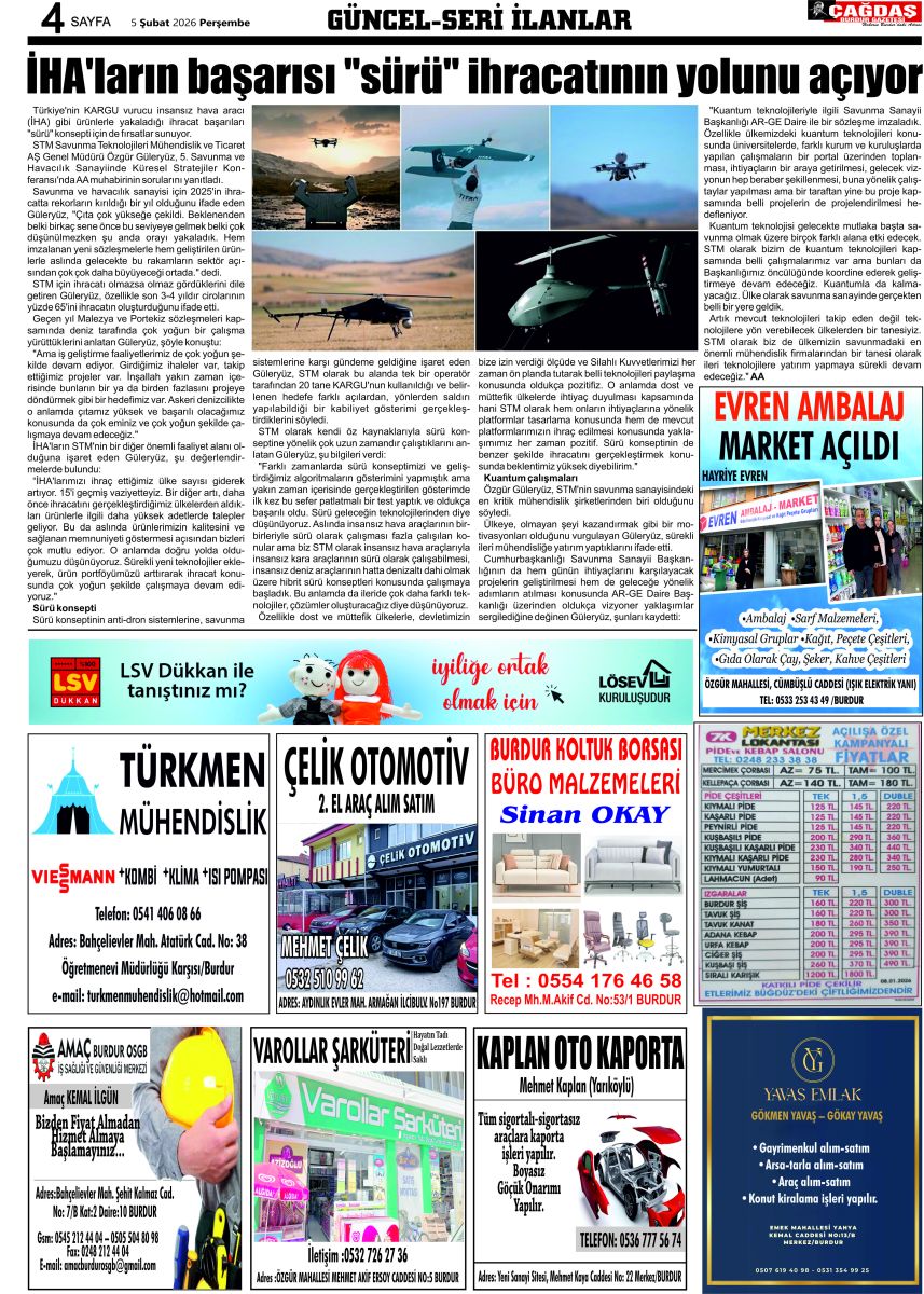 GAZETEMİZ 4 ŞUBAT 2026 TARİHLİ SAYISI