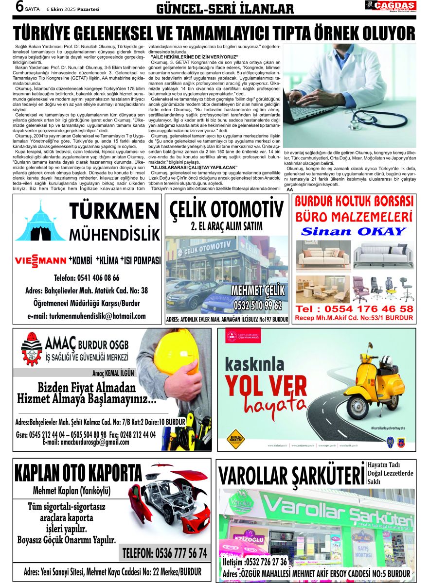 GAZETEMİZ 6 EKİM 2025 TARİHLİ SAYISI