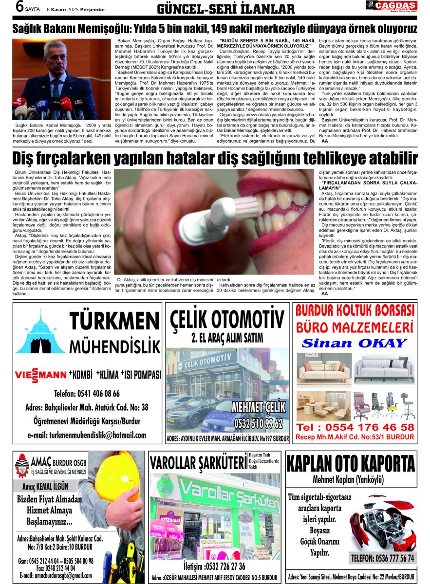 GAZETEMİZ 6 KASIM 2025 TARİHLİ SAYISI