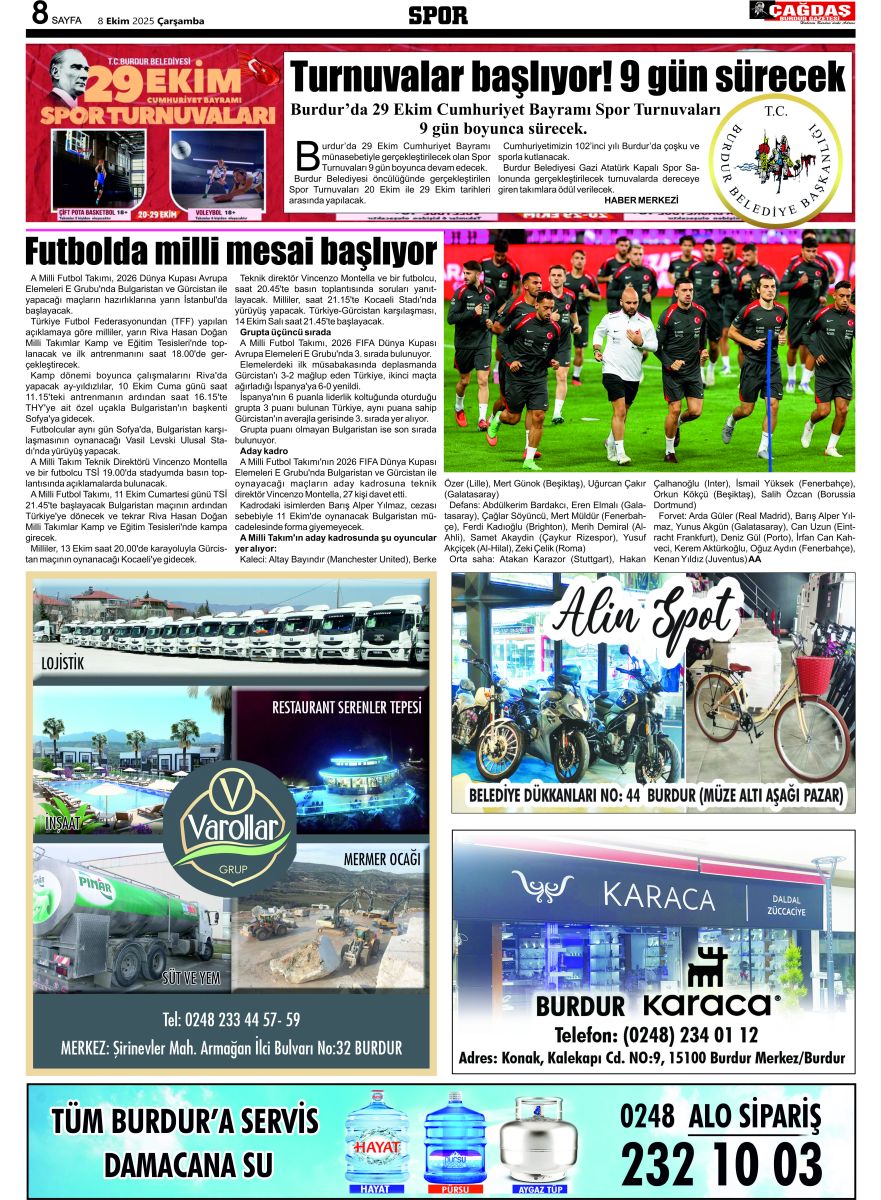 GAZETEMİZ 8 EKİM 2025 TARİHLİ SAYISI