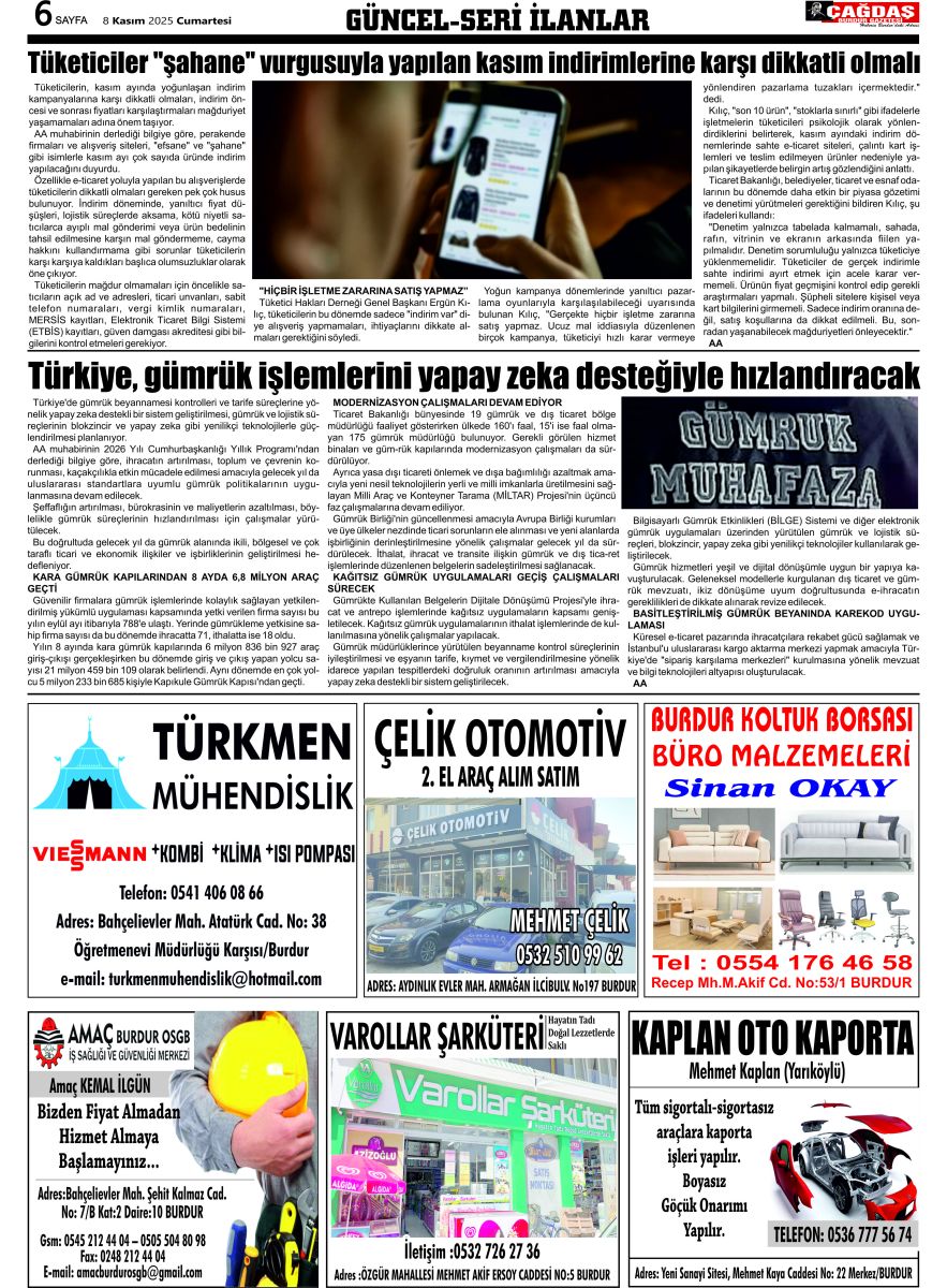 GAZETEMİZ 8 KASIM 2025 TARİHLİ SAYISI