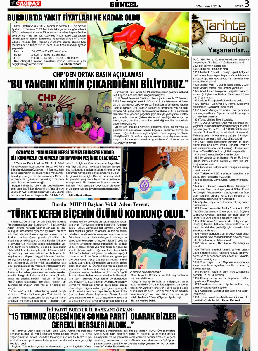 GAZETEMİZİN 18 TEMMUZ 2023 TARİHLİ SAYISI