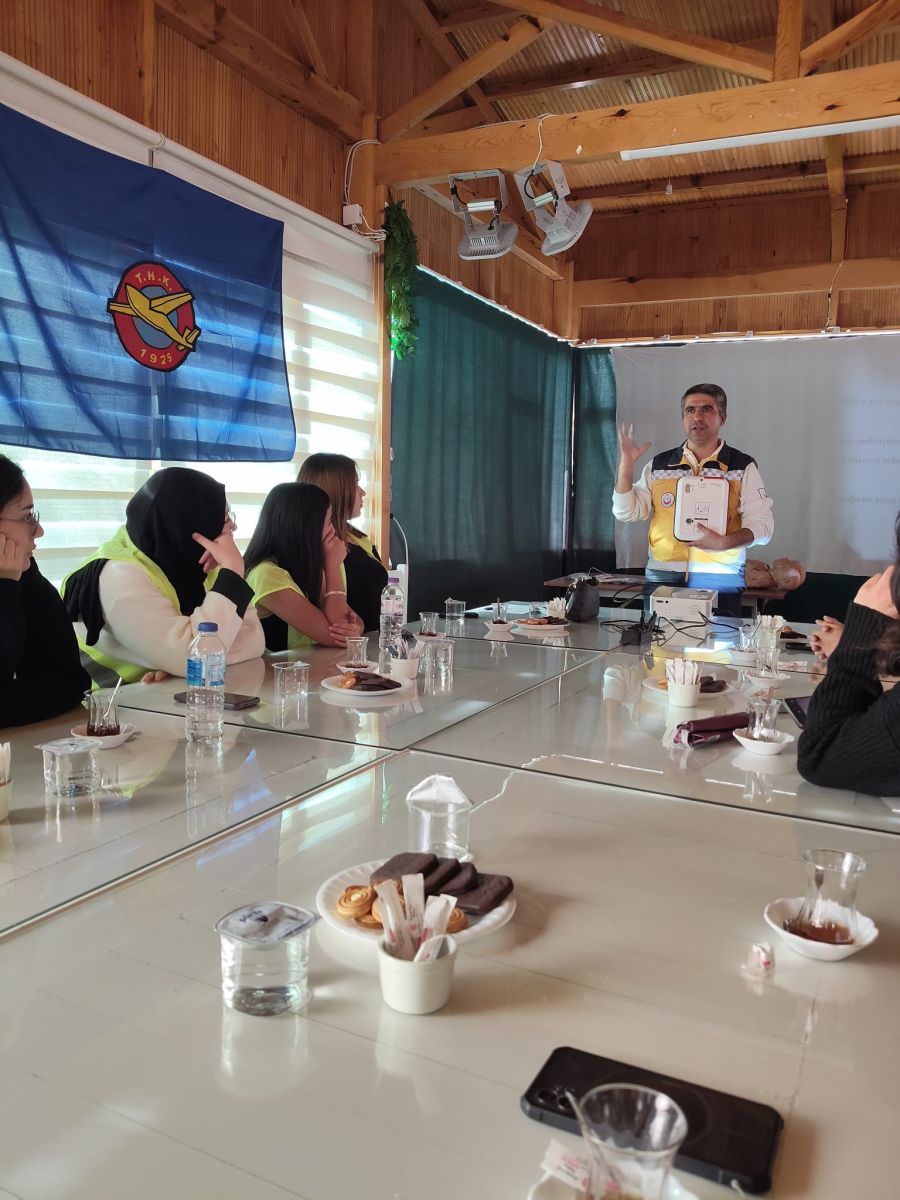 Bu kapsamda Türk Hava Kurumu (THK) Burdur Şubesi Genç Kanatlar Topluluğu üyelerine yönelik düzenlenen “Afetlerde İlkyardım Eğitimi” başarıyla tamamlandı. Eğitim, ATT Bahriye Nur Gülpınar ve Sağlık Memuru Hamza Avcı tarafından verildi.