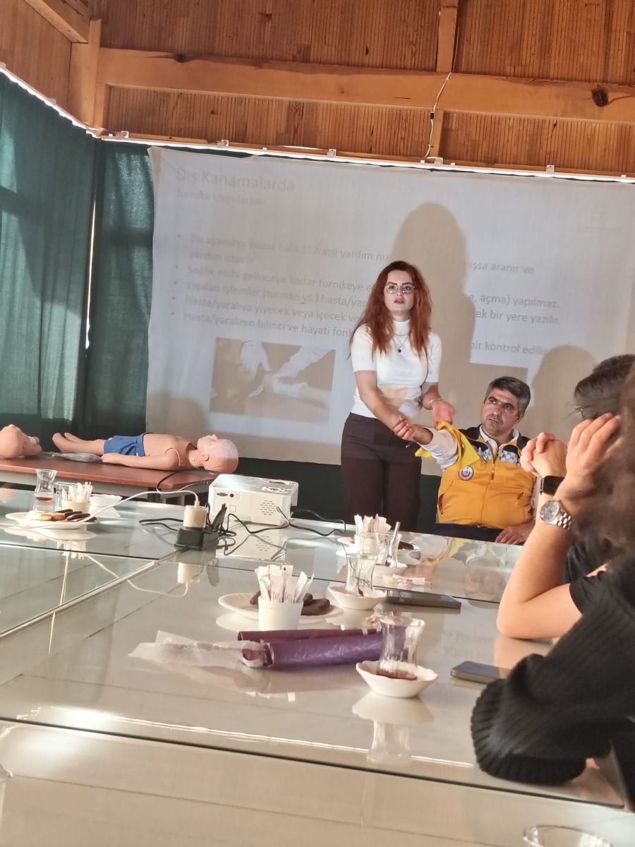 Katılımcılara, afet anında karşılaşılabilecek acil sağlık sorunlarına müdahale yöntemleri ve hayat kurtarıcı temel uygulamalar teorik ve pratik olarak aktarıldı.